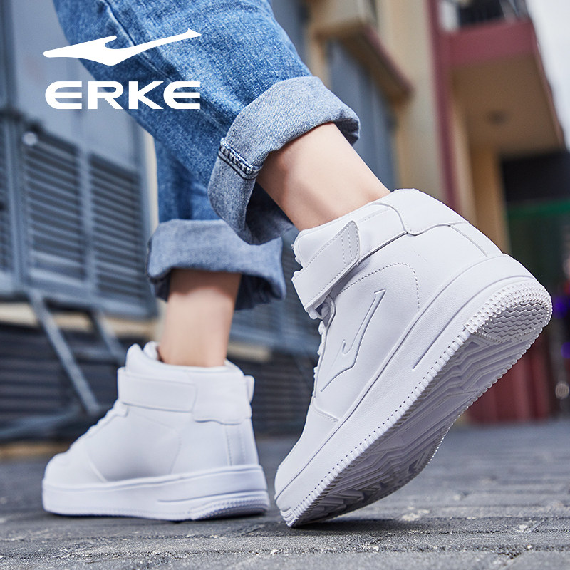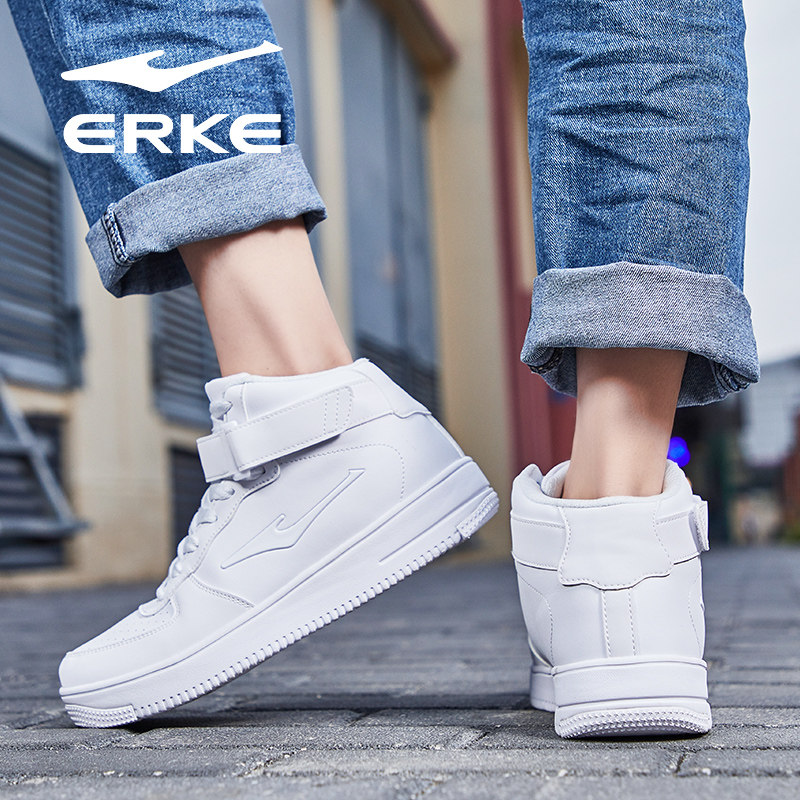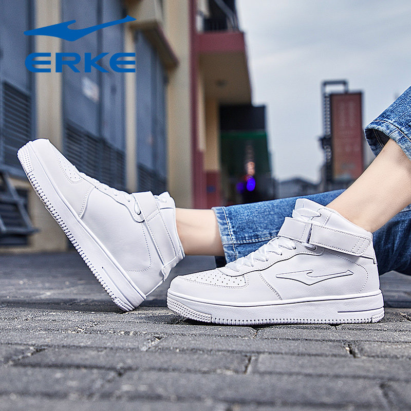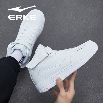 鸿星尔克男鞋板鞋青少年学生白色冬季保暖休闲空军一号高帮小白鞋