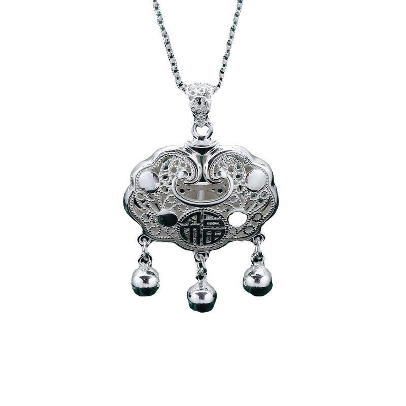 福字花丝长命锁宝宝999纯银镂空银锁婴儿银饰福锁直播引流爆款