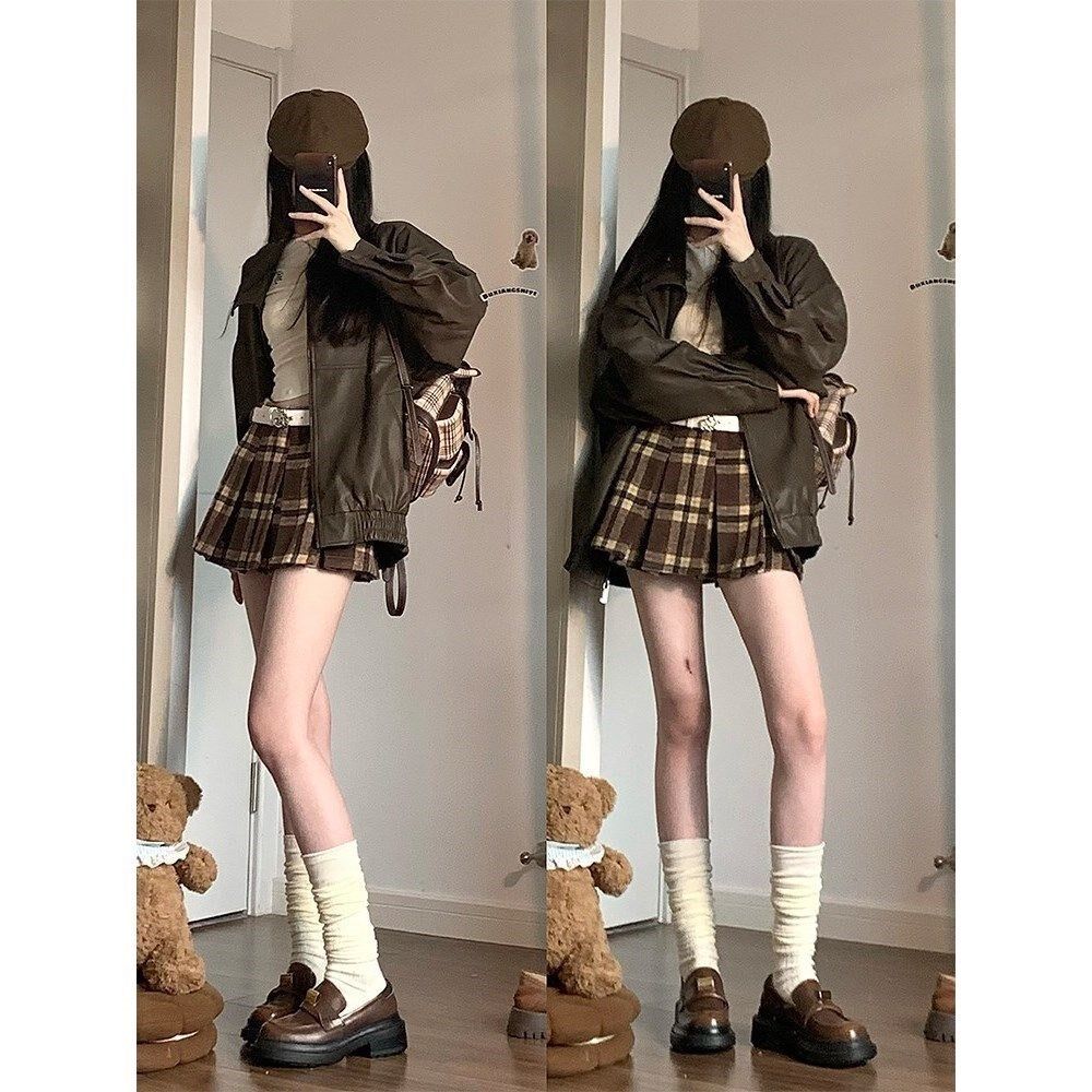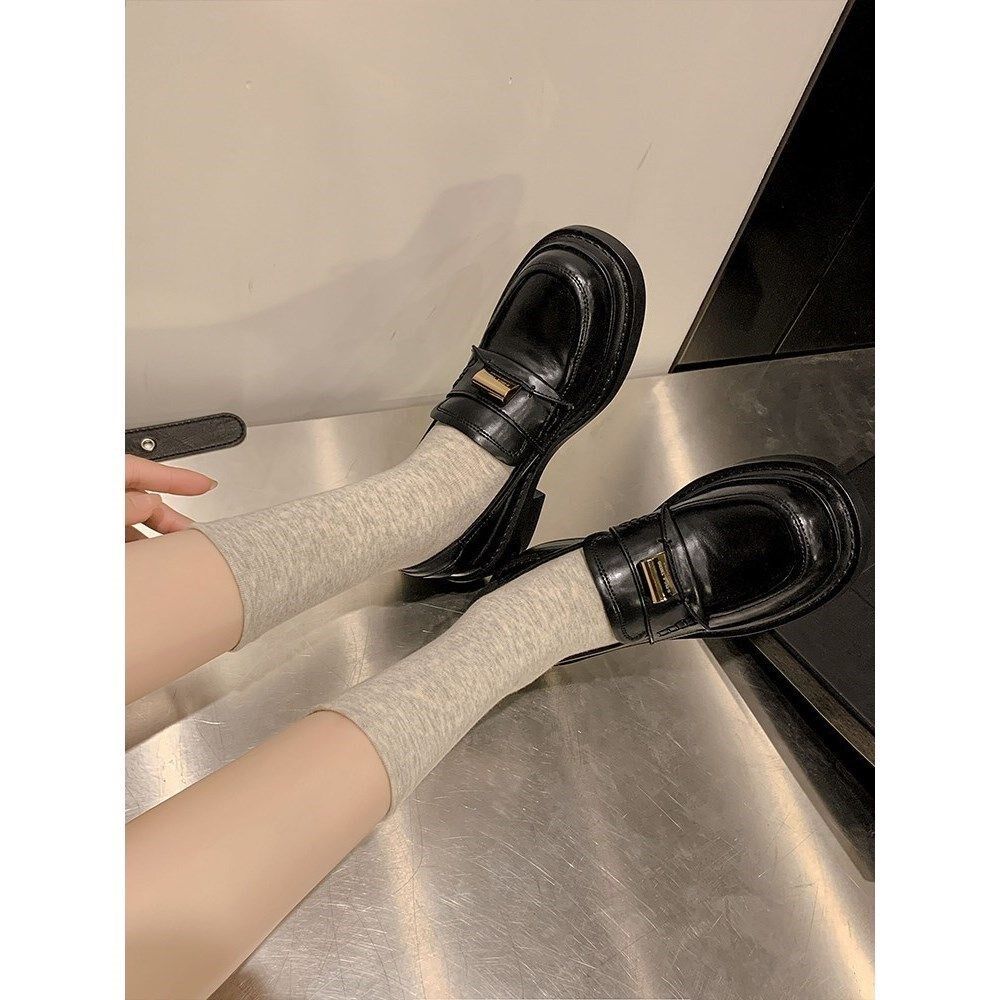 欧洲站女鞋2026法式单鞋女圆头粗跟棕色小皮鞋百搭一脚蹬乐福鞋