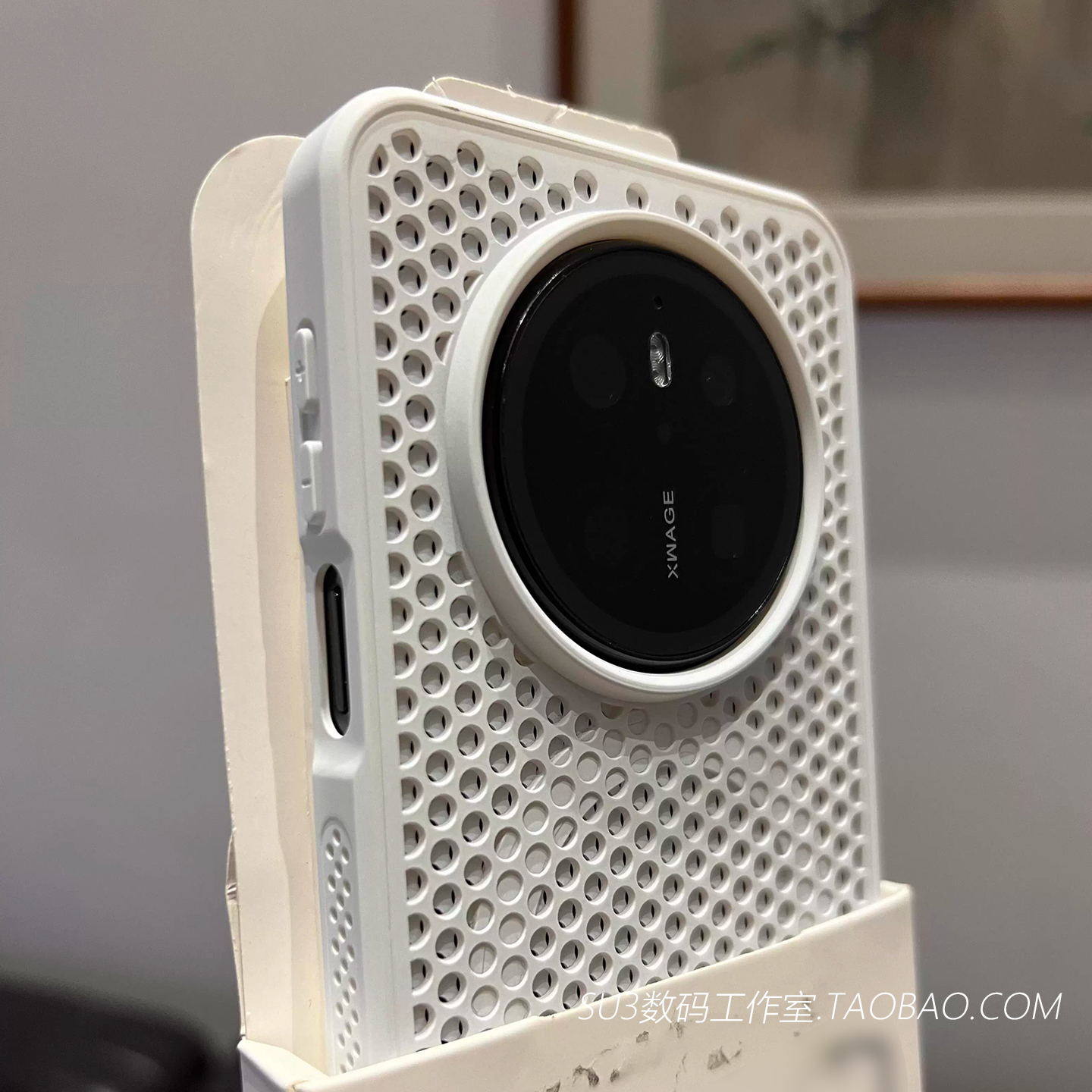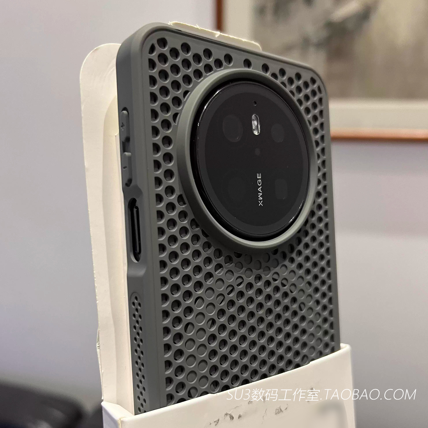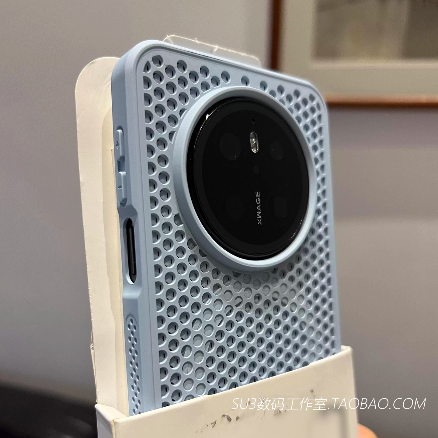 镂空散热蜂窝透气磁吸充电适用华为mate70/60pro手机壳50高级感荣耀magic7pro橙色Pura70全包+网孔气囊防摔套