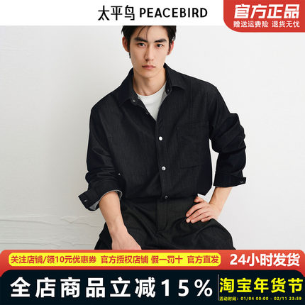 太平鸟男装 休闲衬衫2025秋季丝光牛仔阔版时尚男士衬衫BACHF3175