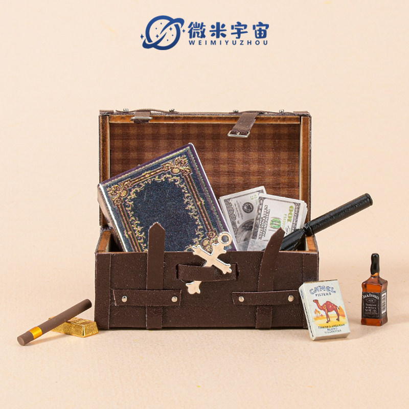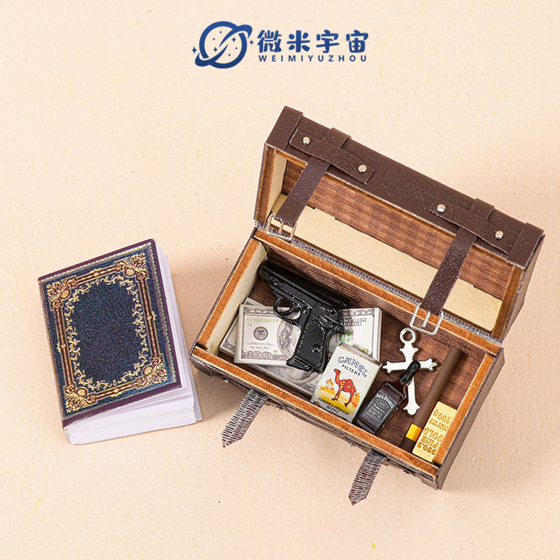 迷你仿真复古皮箱书本手枪钞票烟模型微缩老式怀旧娃娃屋道具玩具