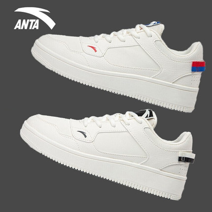 安踏男鞋夏季低帮白色皮面