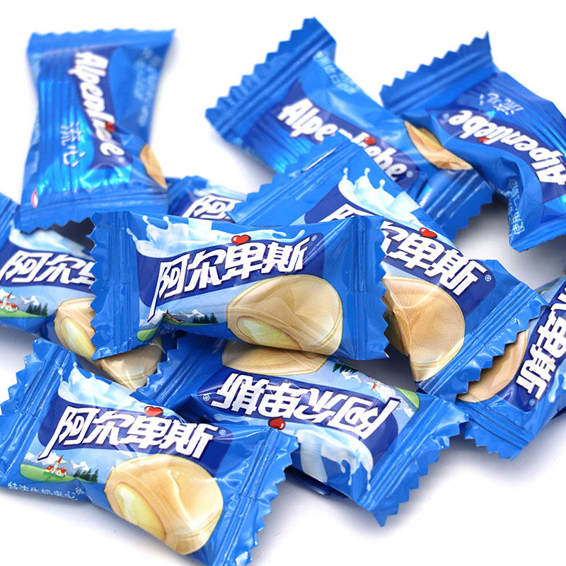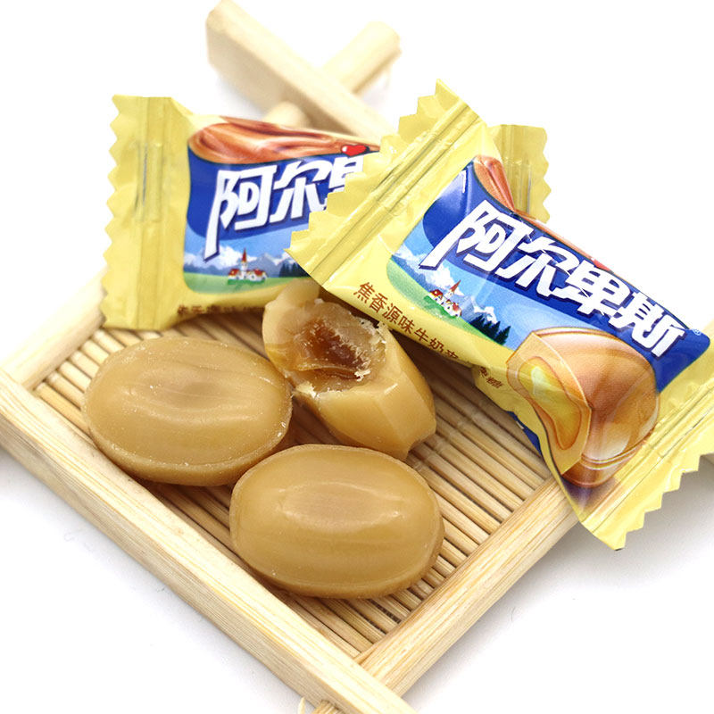 阿尔卑斯夹心硬糖流心糖果焦香源味500g100颗特浓牛奶草莓味零食