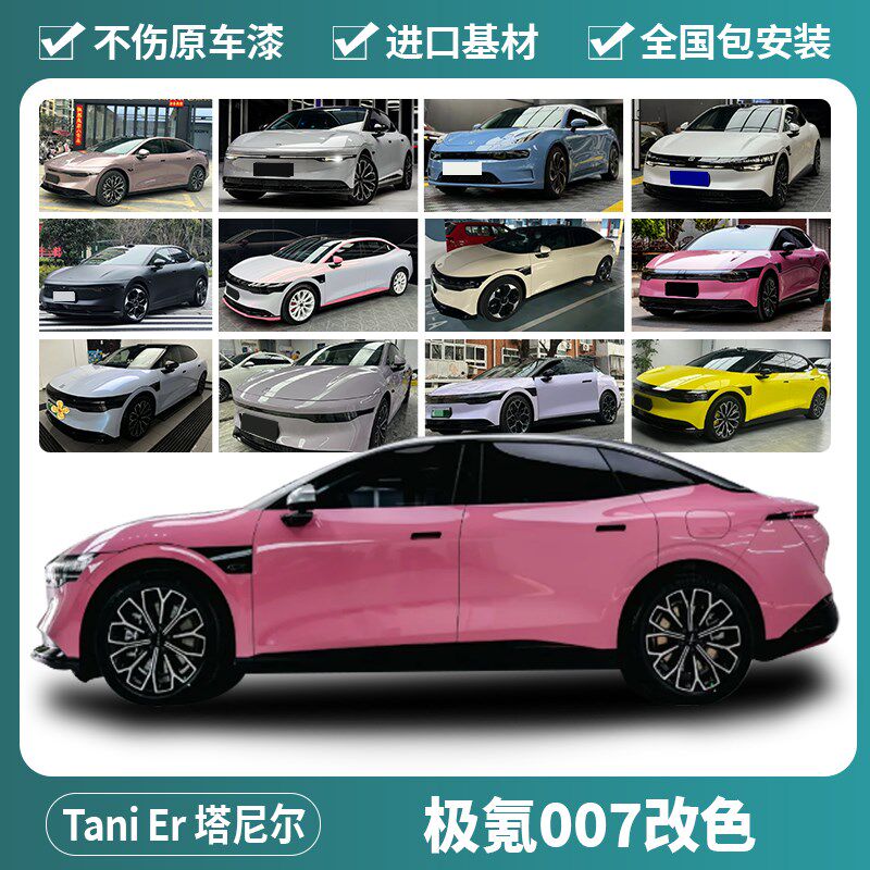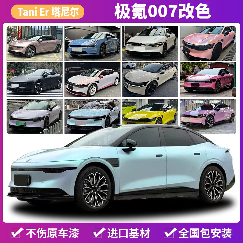 极氪007汽车改色膜液态金属龙血红超哑灰蓝威尼斯紫车身全车贴膜
