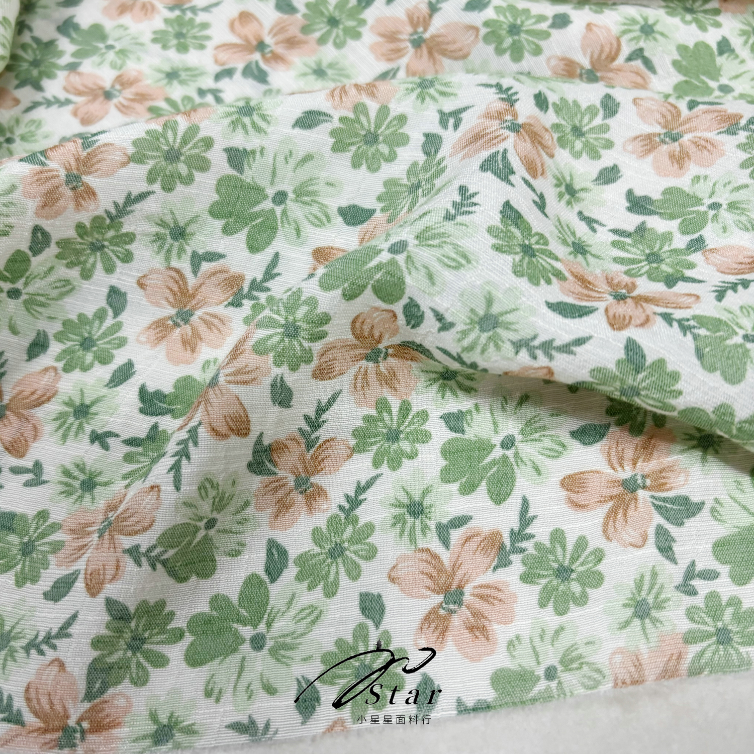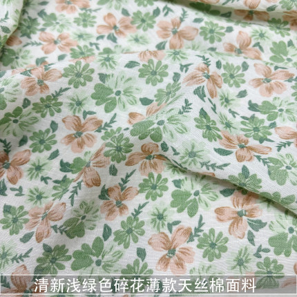 清新浅绿色小碎花薄款天丝棉面料衬衫连衣裙汉服莱赛尔棉布料夏季