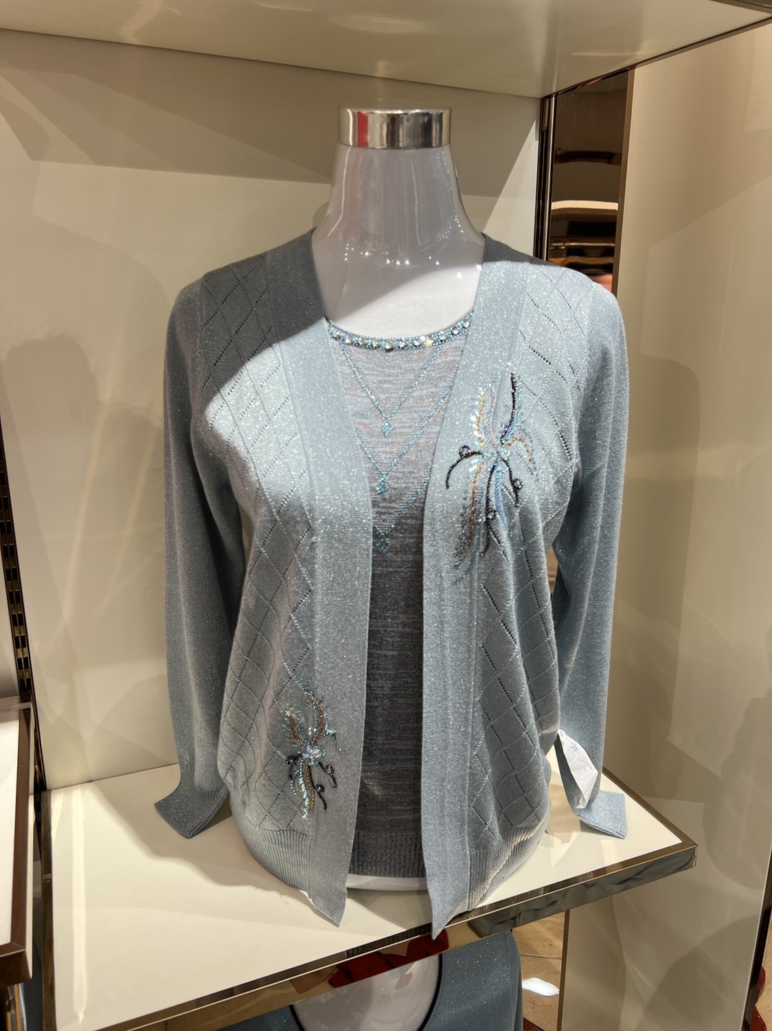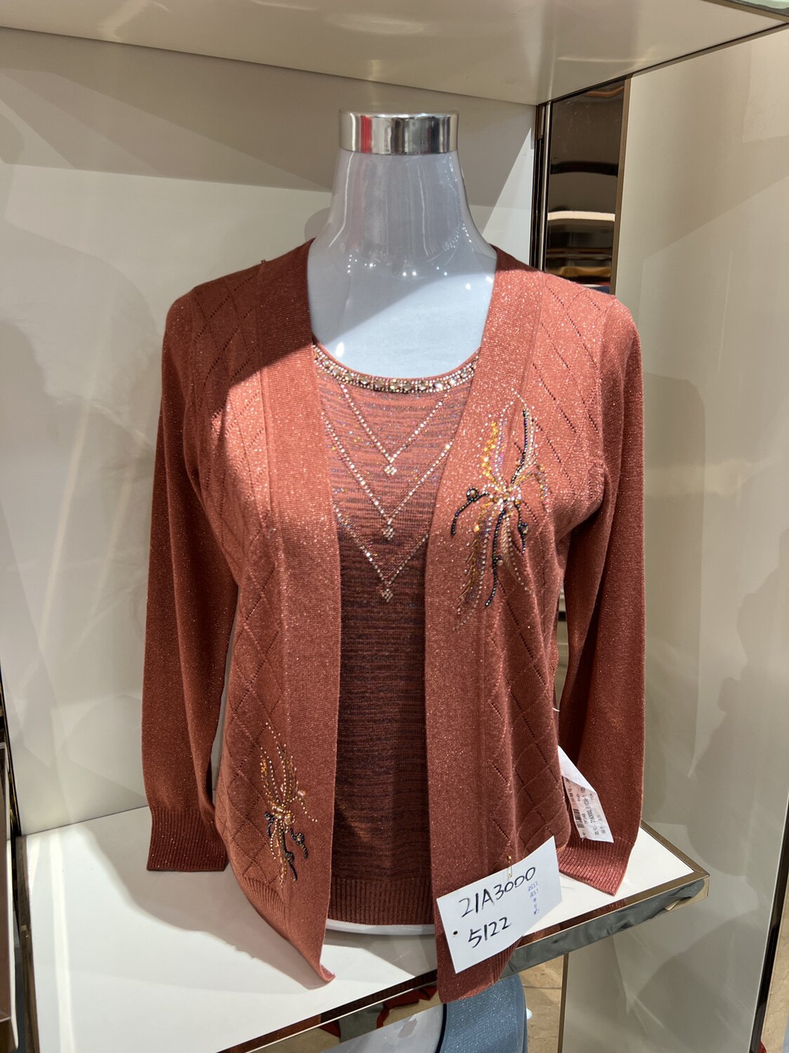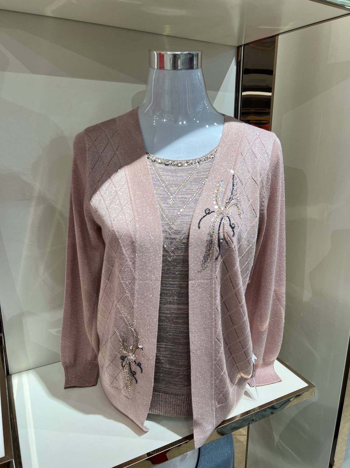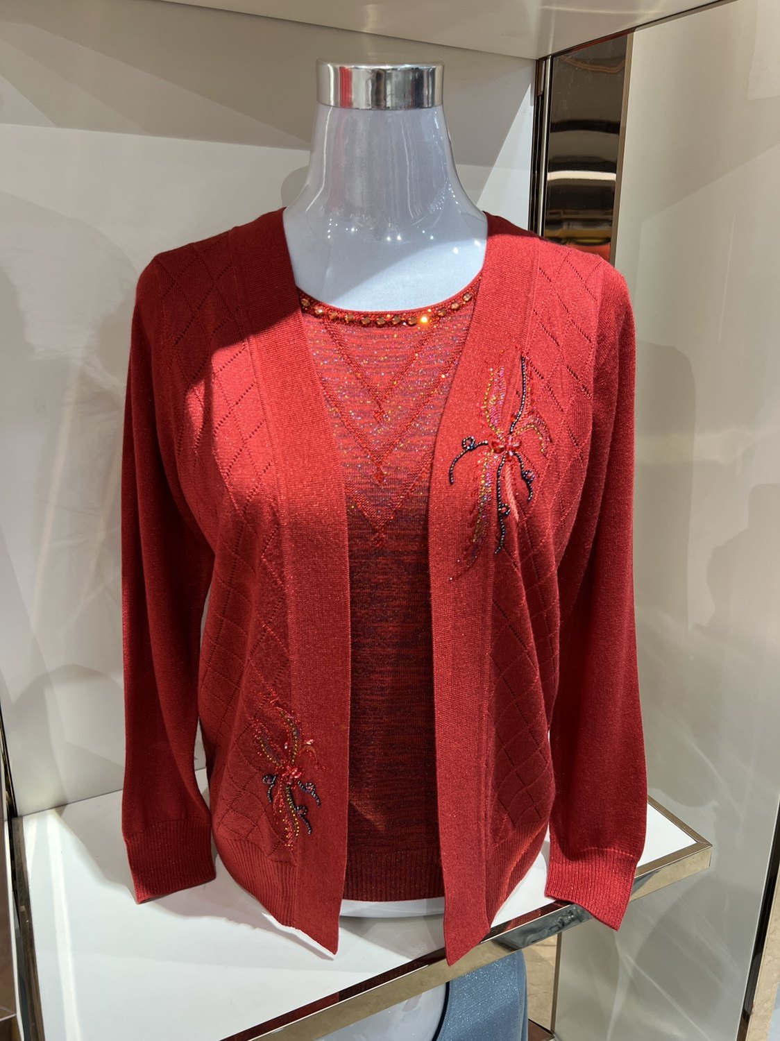 22中年妈妈春装针织开衫外套中老年女装春秋假两件套T恤洋气上衣