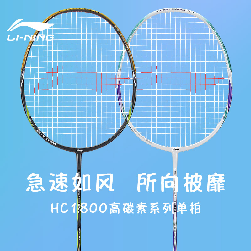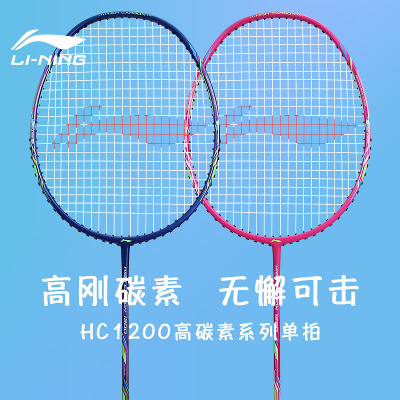 李宁羽毛球拍官网正品全碳素初学耐用专业男女款HC1800单拍HC1200