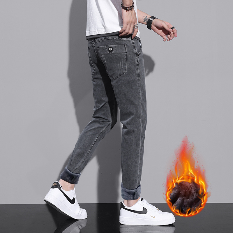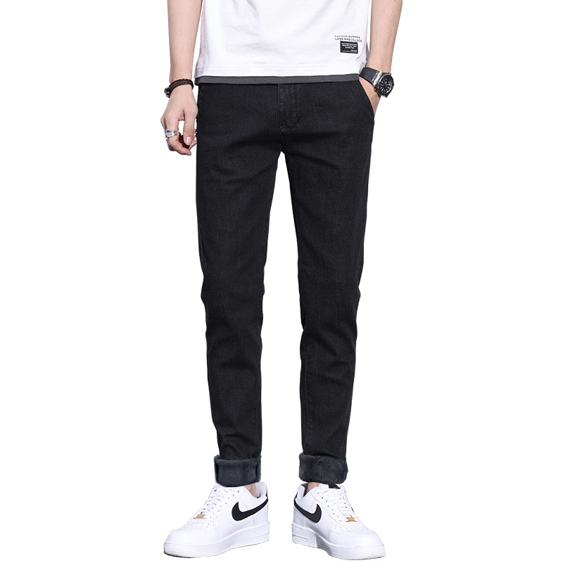 新款潮流百搭加厚长裤子秋冬 加绒保暖韩版弹力修身小脚牛仔裤男