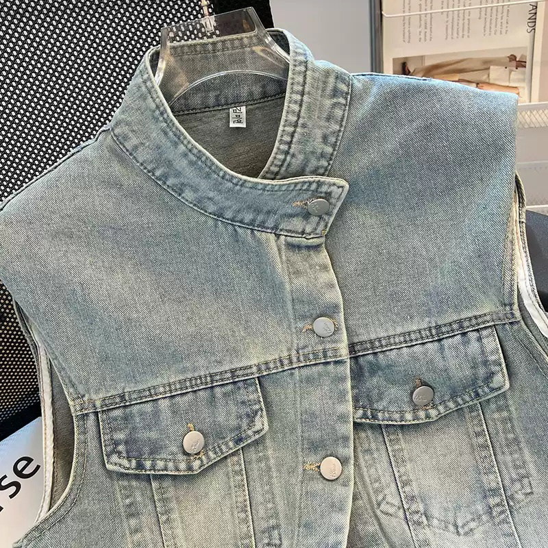 港味chic复古牛仔马甲女2025夏季氛围感水洗做旧无袖外搭小外套女