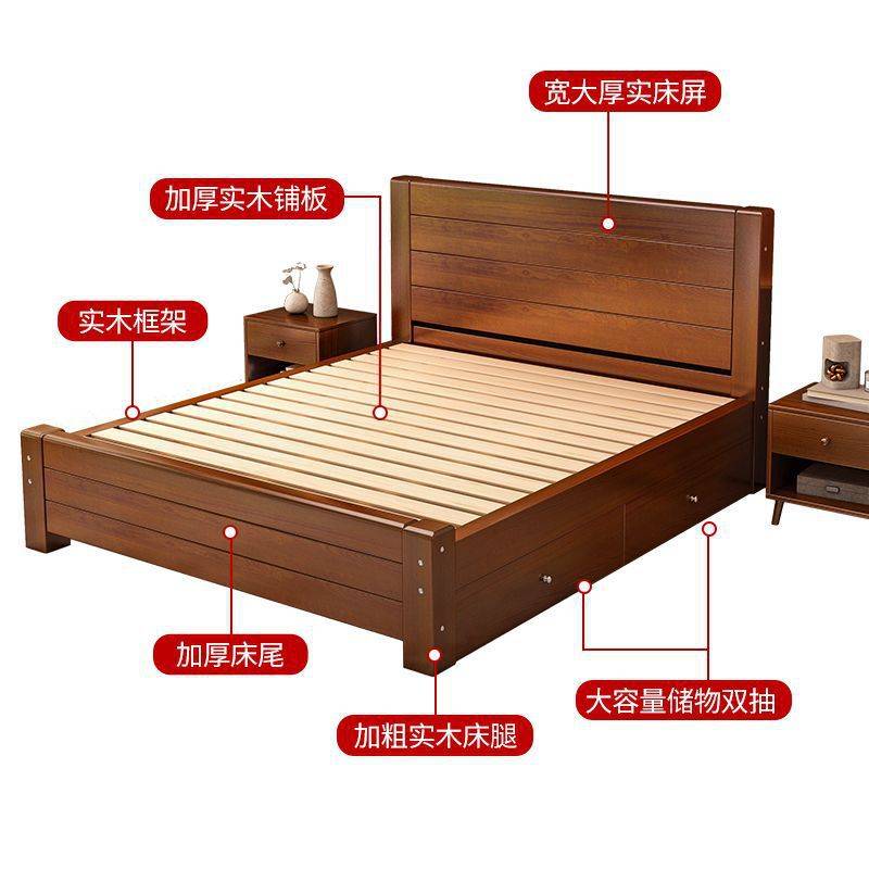 实木床现代简约1.8m双人床简约主卧1.5家用单人床小户型组合1.2米