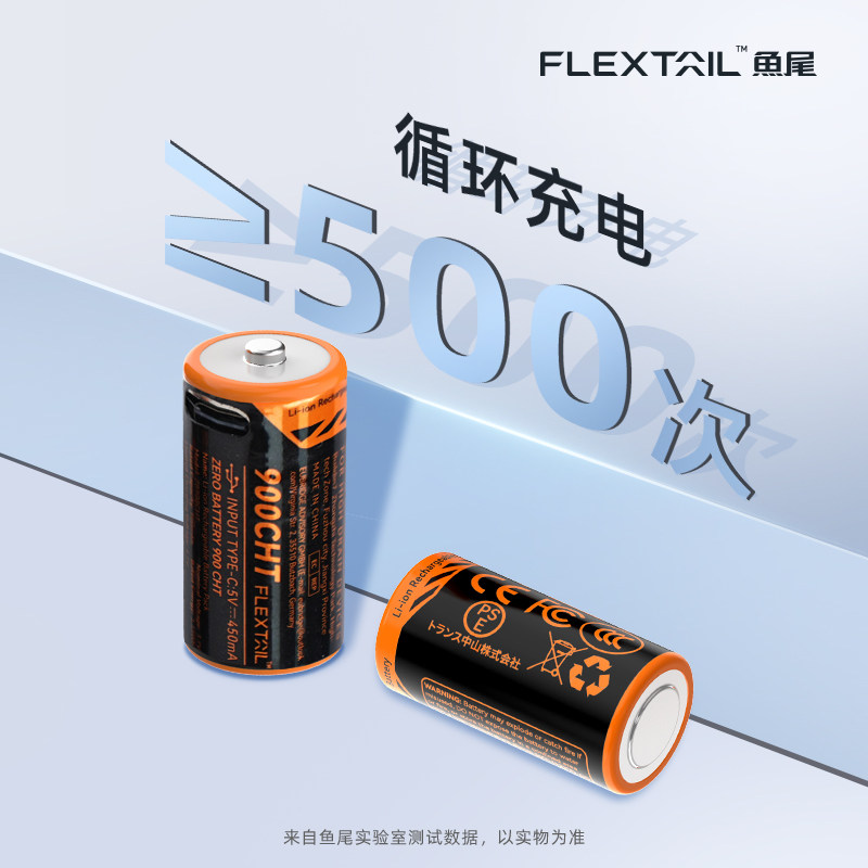FLEXTAIL鱼尾RCR16340可充电电池Type-C直充适配ZERO超轻量气泵用