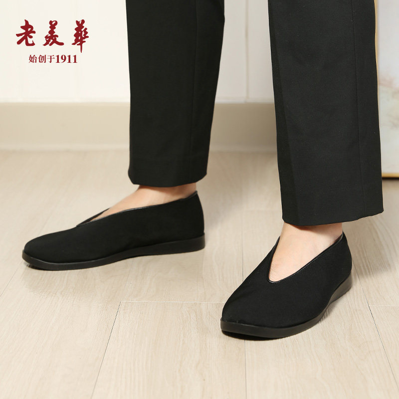 老美华老北京布鞋男秋季防滑圆口黑布鞋中老年爸爸鞋相声武术鞋子