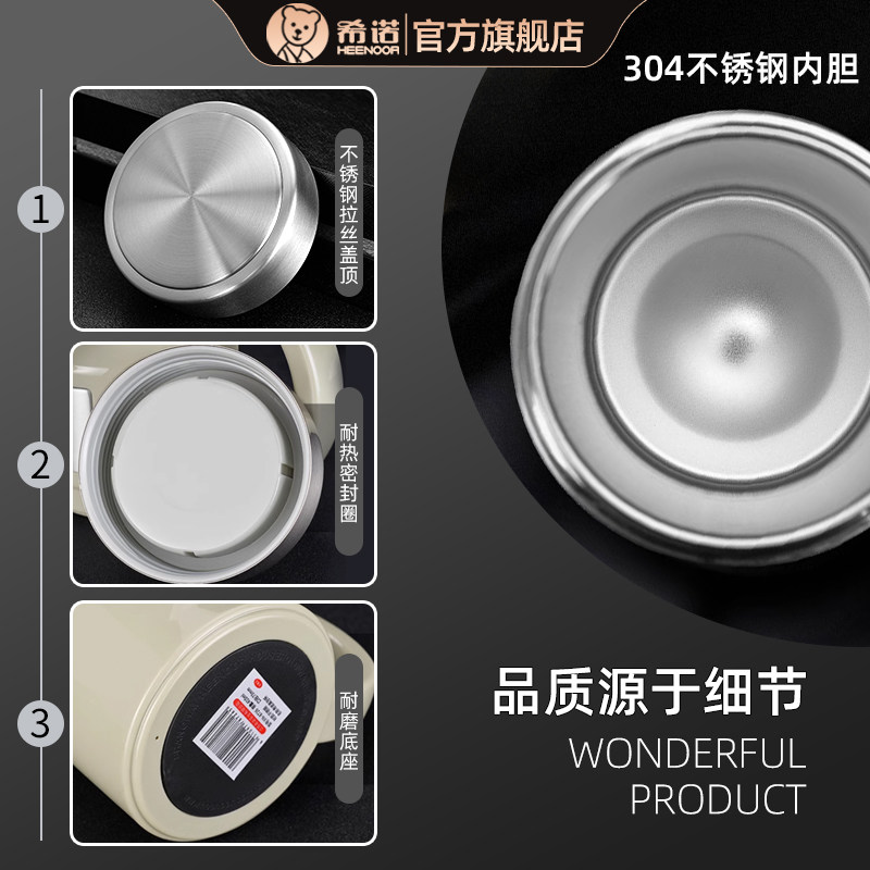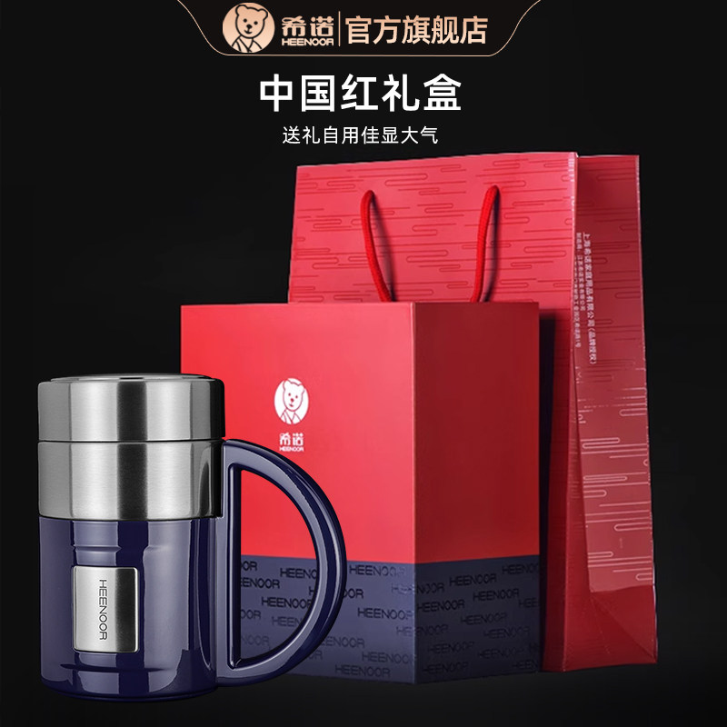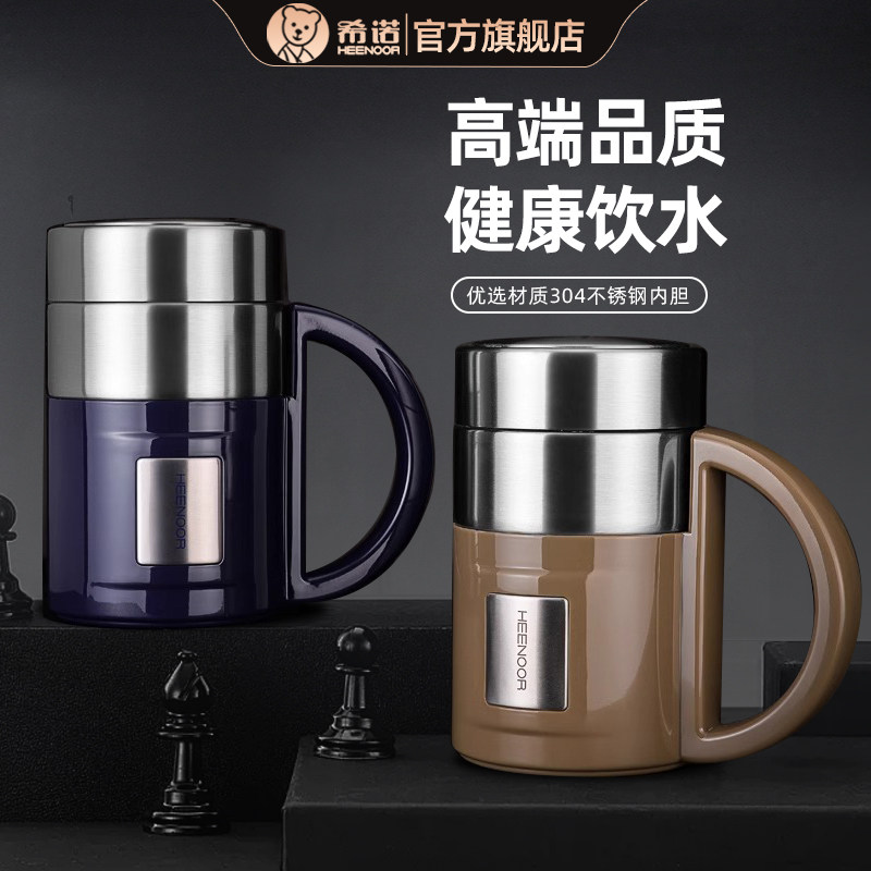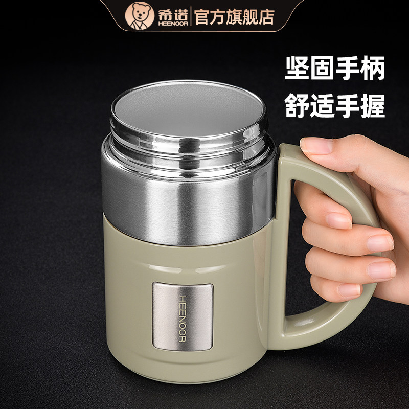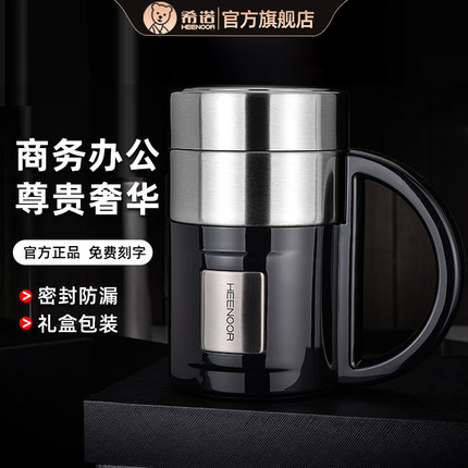 希诺办公室保温杯带手柄男士大容量水杯高端带把不锈钢泡茶杯礼盒