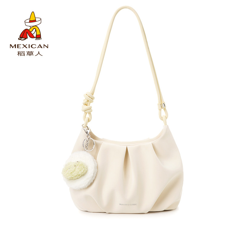 稻草人包包女包2025新款小众褶皱单肩包高级感简约通勤斜挎包正品