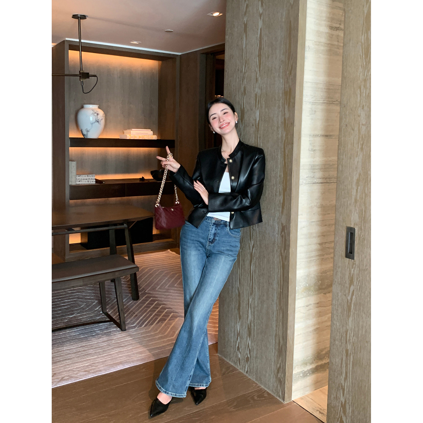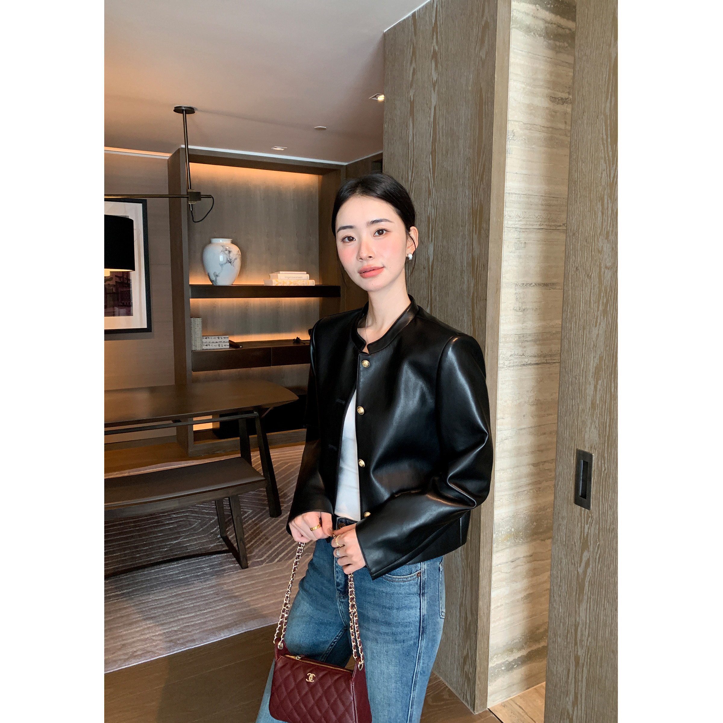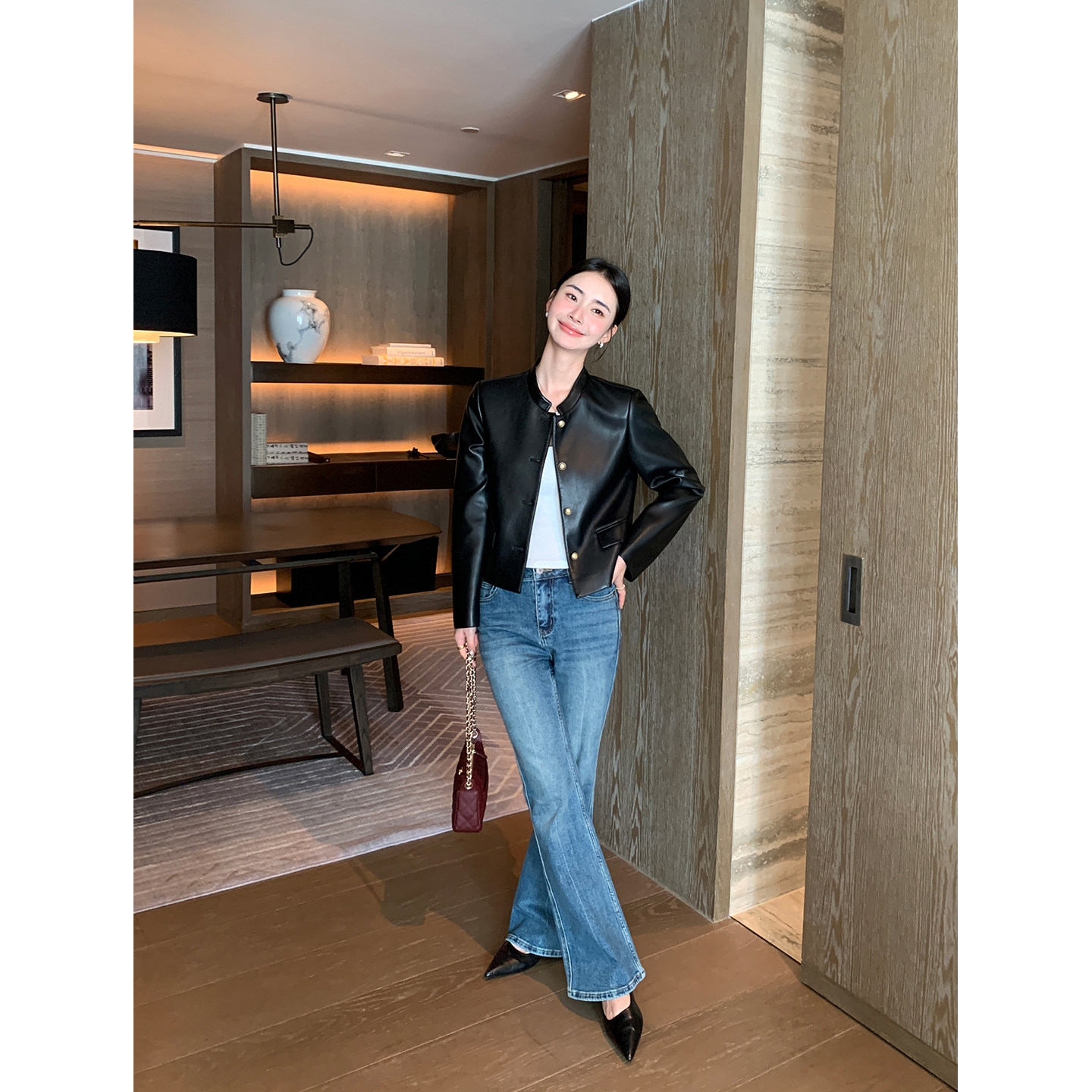 Maven Lin【现货7折】摩登松弛 黑色pu皮衣外套女短款夹克机车服