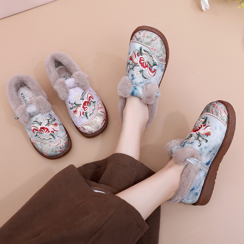 意迪森老北京布鞋冬季女棉鞋加绒加厚保暖防滑妈妈鞋中老年雪地靴