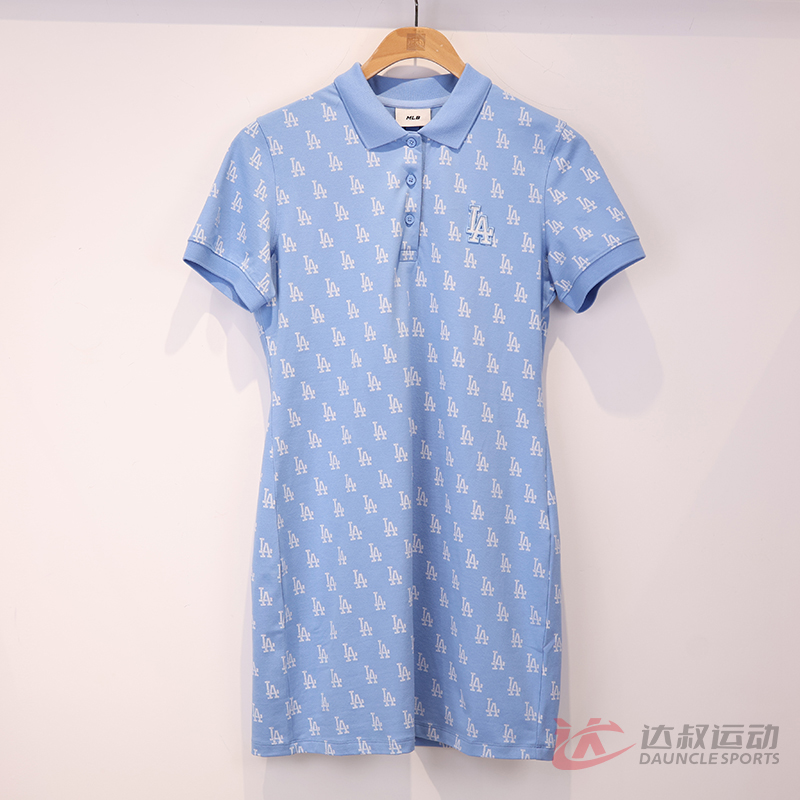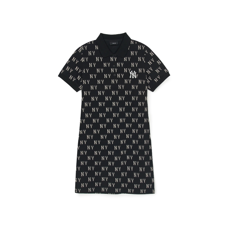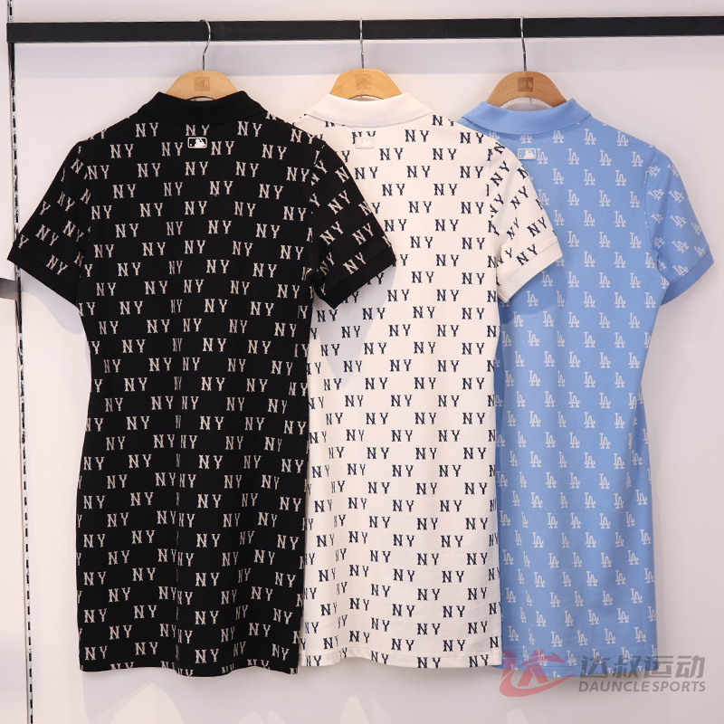 25新款MLB女款连衣裙NY复古老花满印polo翻领短袖运动裙3FOPM0353
