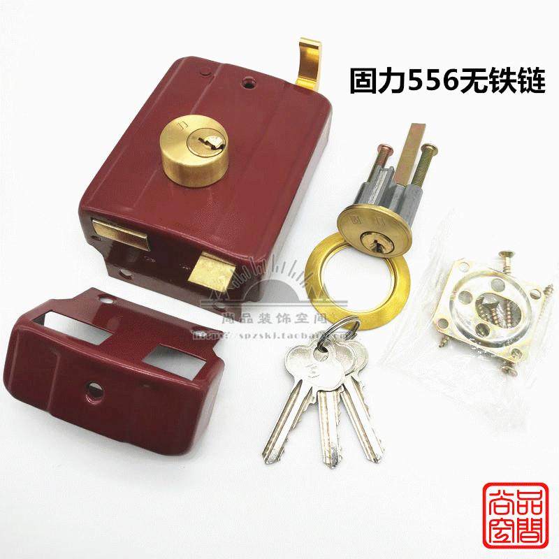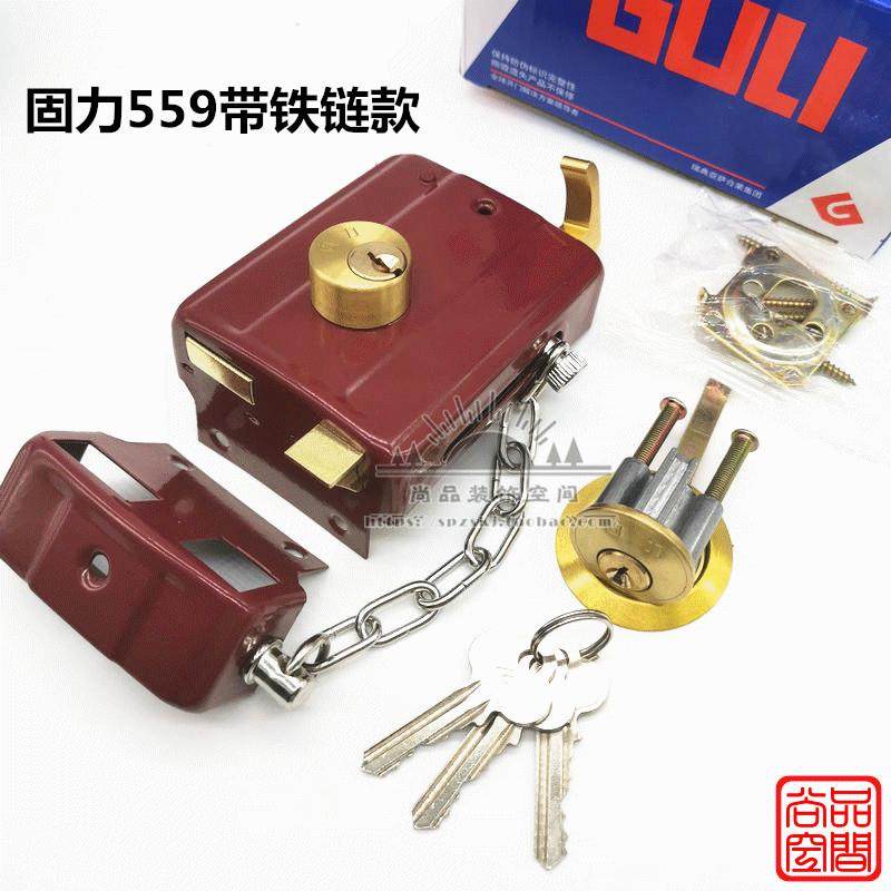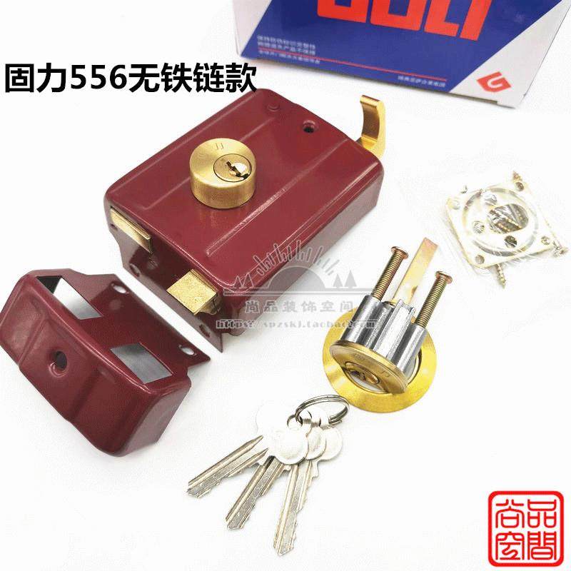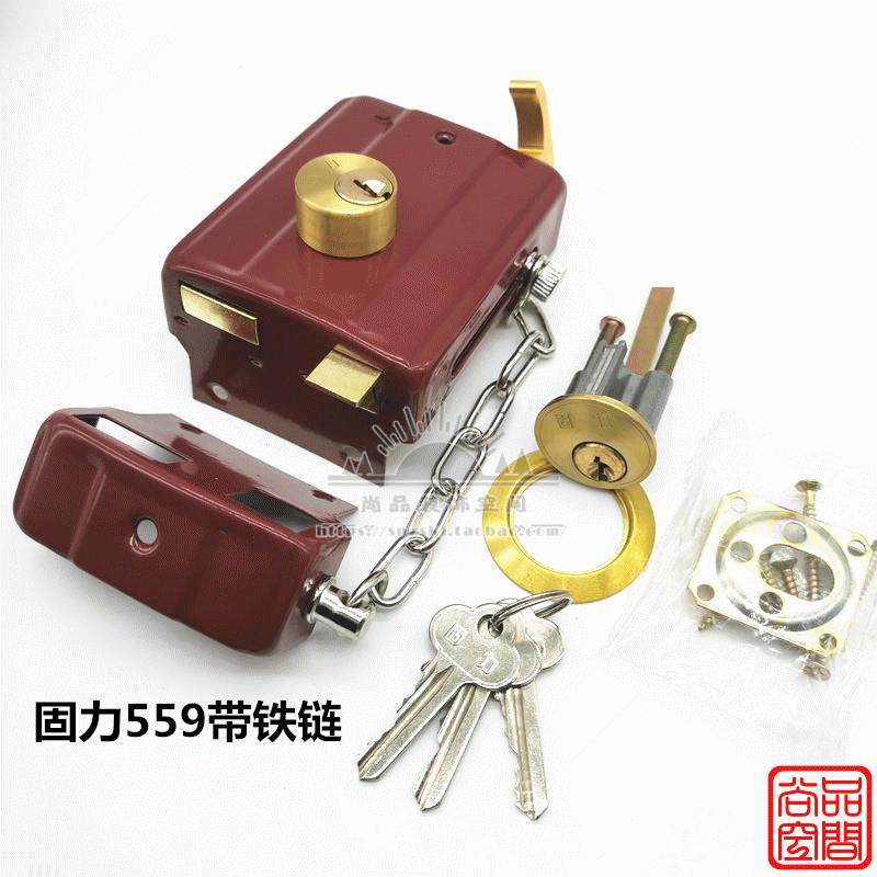 固力559RL 556RL外装双舌门锁 老式铁木钢门防盗锁 铜锁芯带铁链