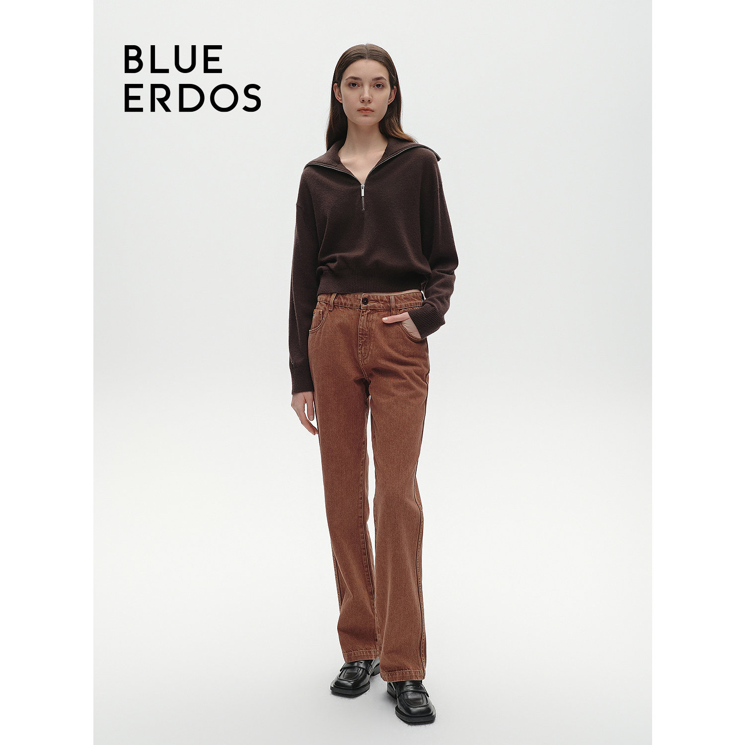 BLUE ERDOS休闲直筒通勤纯棉棕色牛仔裤女B246M3009