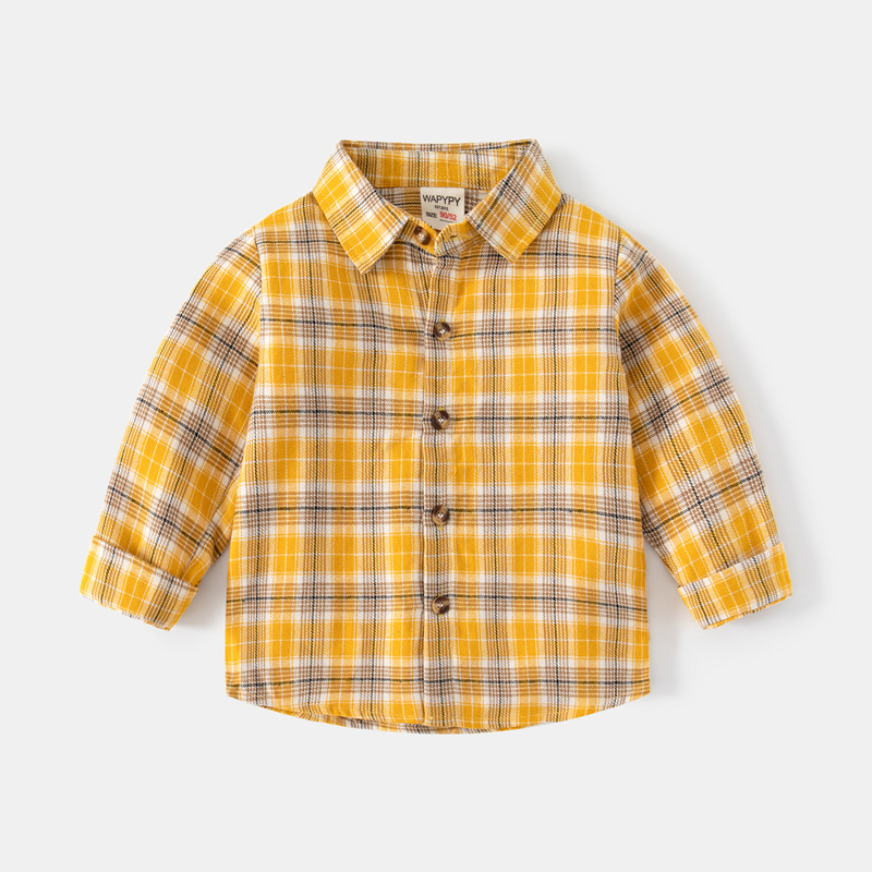儿童棉质长袖衬衫2025春秋装男童格子衬衣宝宝休闲磨毛方领上衣潮
