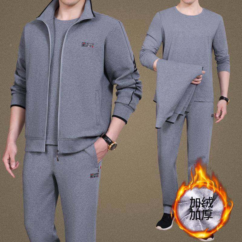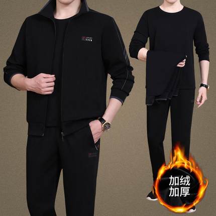 中老年男秋冬季男大码爸爸休62912360装三件套加厚运动服士闲套装