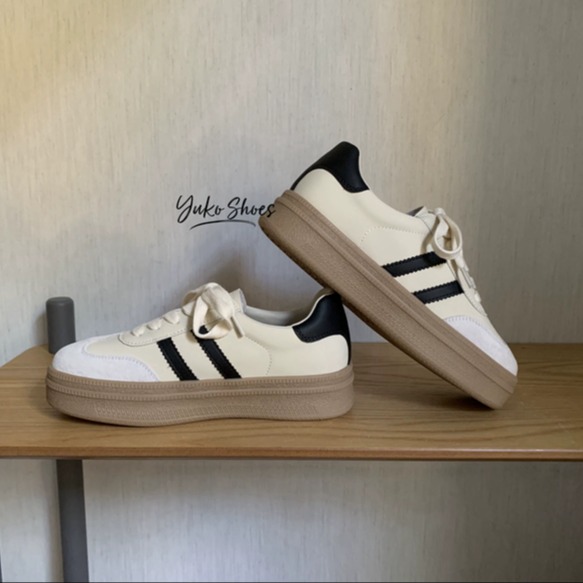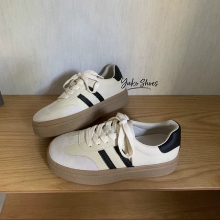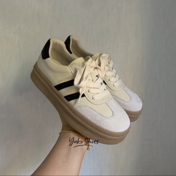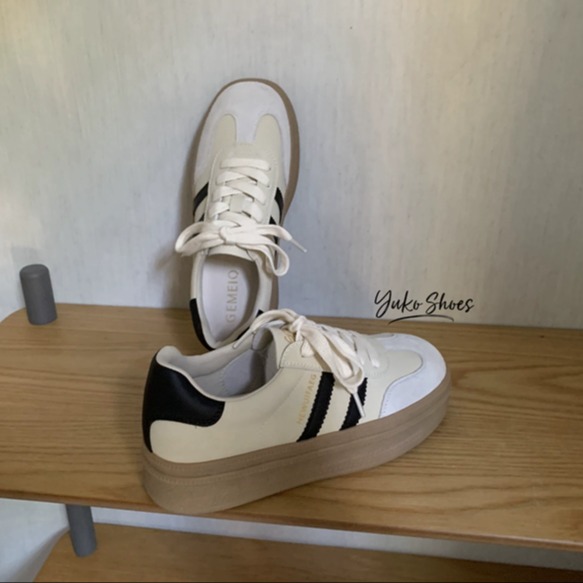 2025秋季新款~萌萌圆头厚底真皮阿甘德训鞋白运动板鞋女休闲单鞋