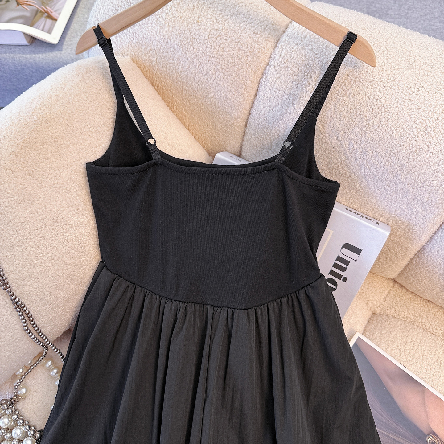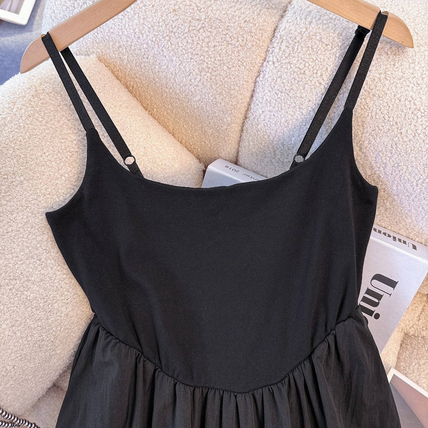 拉夏贝尔黑色吊带连衣裙女2026春