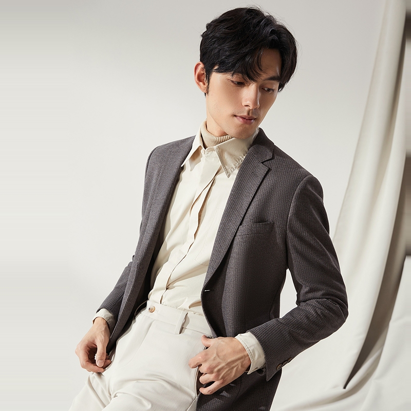 【高端系列】柒牌平驳领西装男秋冬新款磨毛针织商务休闲单西外套