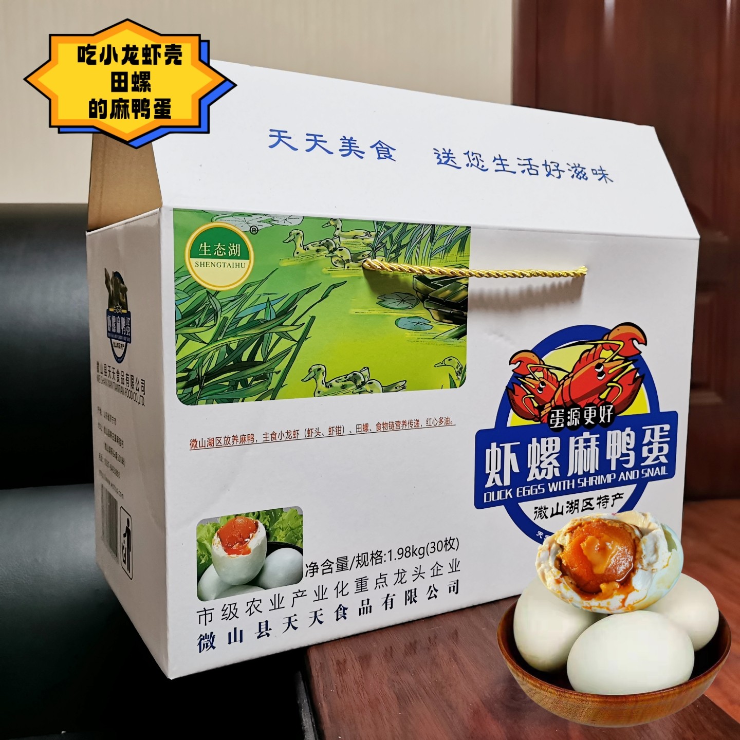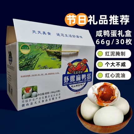 微山湖咸鸭蛋礼盒红心流油散养虾螺麻鸭蛋整箱特产熟即食特大不咸