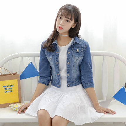2023新品女装夏季七分袖牛仔外套女韩版修身显瘦休闲短款夹克潮