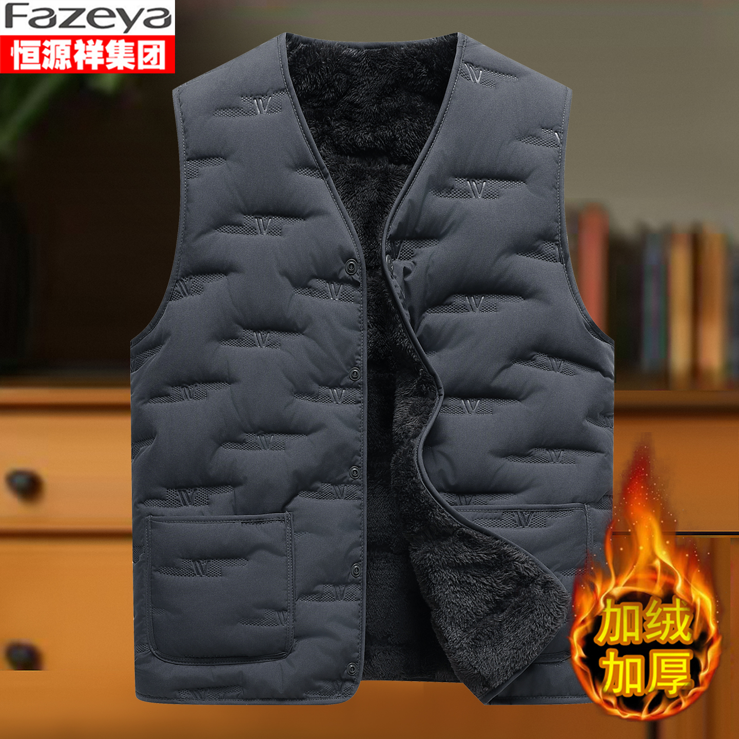 恒源祥彩羊冬季新款加绒加厚棉马甲男中老年爸爸大码保暖内穿背心