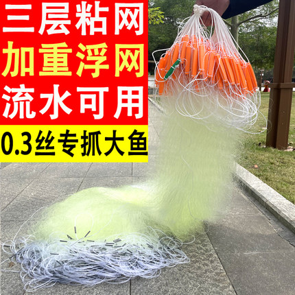 0.3加粗丝加重三层浮网渔网粘网挂子水库鲫鱼鲢鱼流水浮网捕鱼网