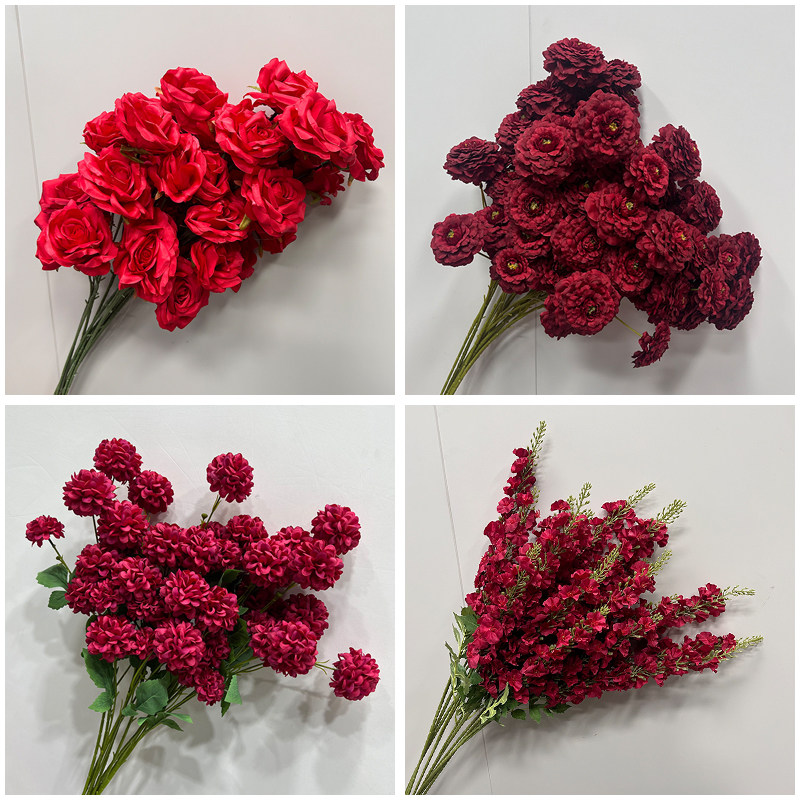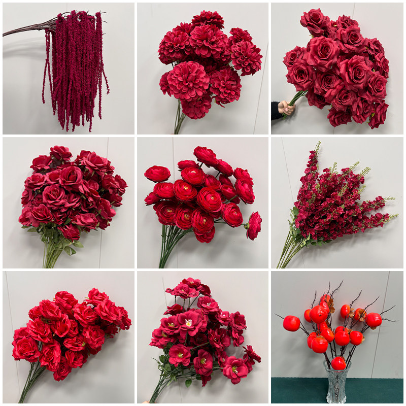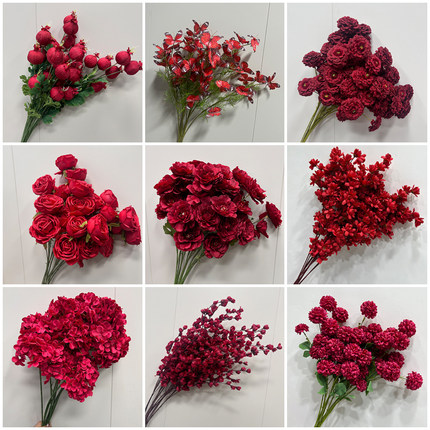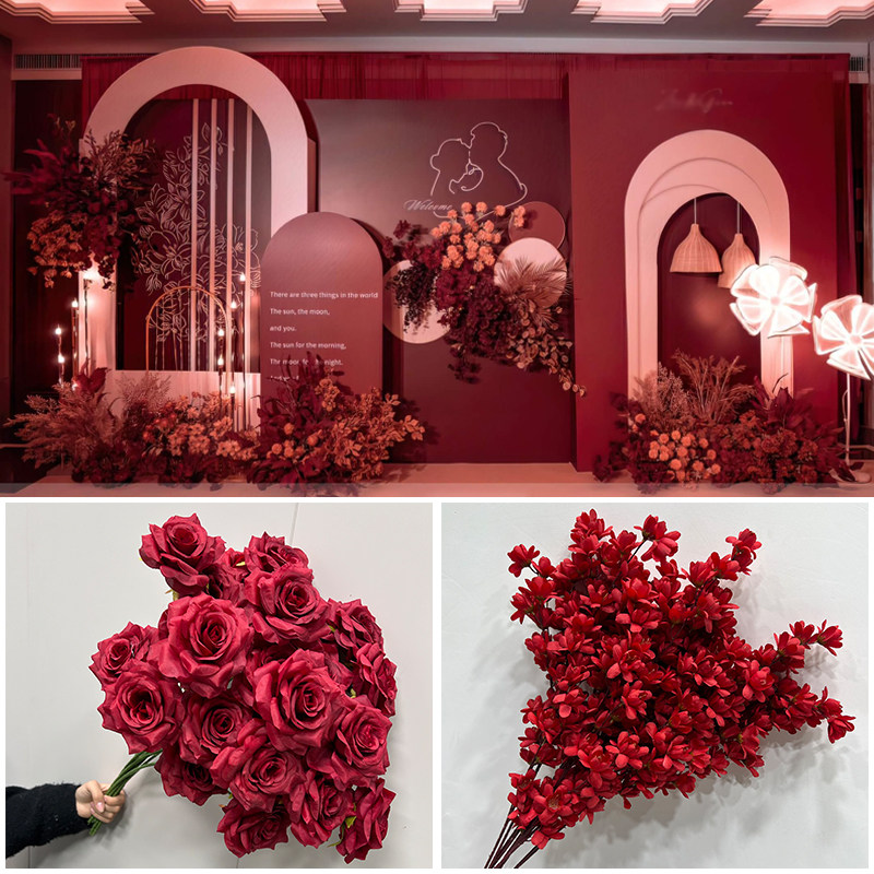 婚庆红色仿真花婚礼造景假花客厅婚庆摆饰玫瑰花拍照仿真道具