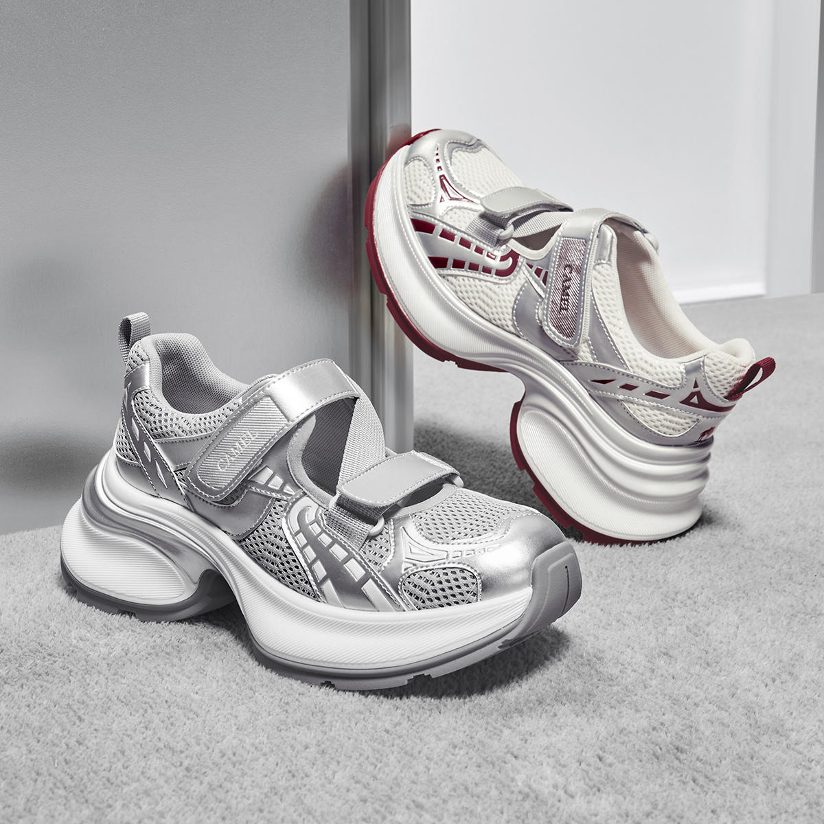 骆驼女鞋2025秋季新款户外运动鞋女款镂空透气厚底魔术贴老爹凉鞋