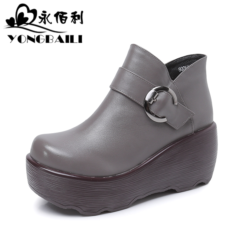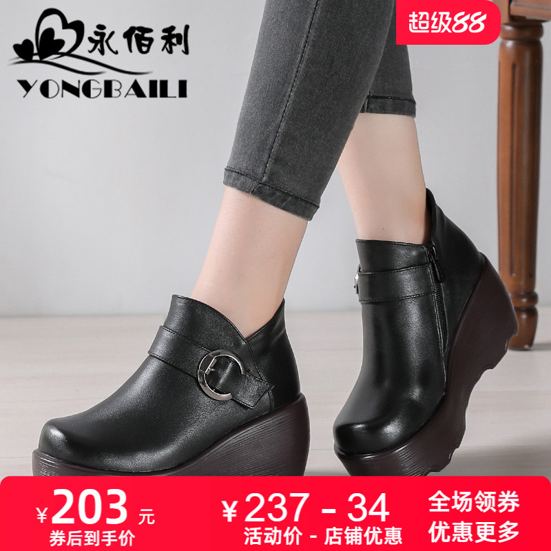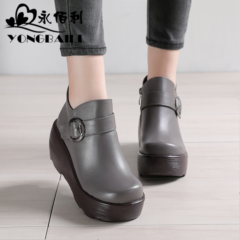 2025秋冬新款原创复古牛皮高跟厚底短筒靴女圆头休闲女皮鞋皮靴子