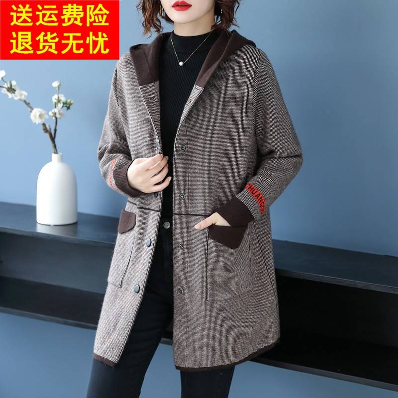 时尚双面毛呢外套女中长款秋冬连帽开衫胖mm大码显瘦高端羊绒大衣