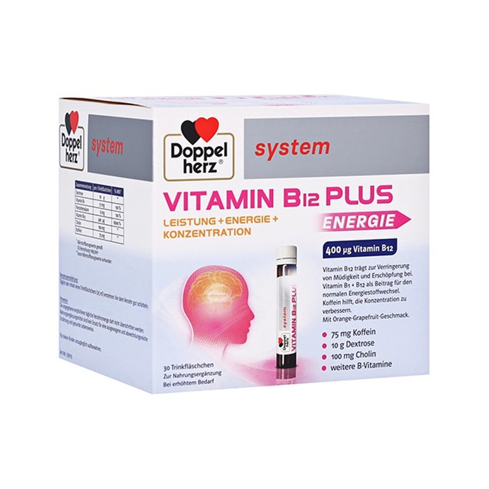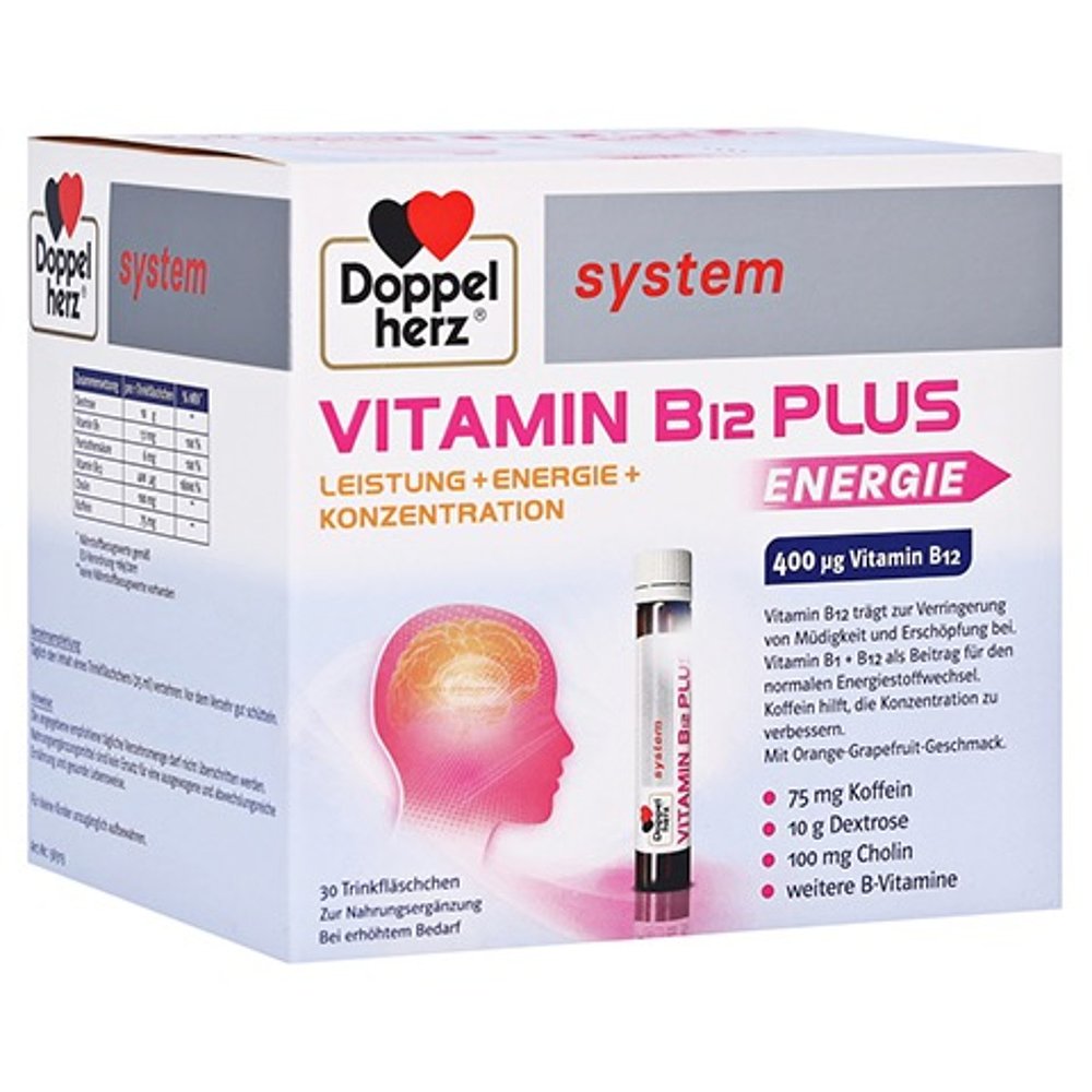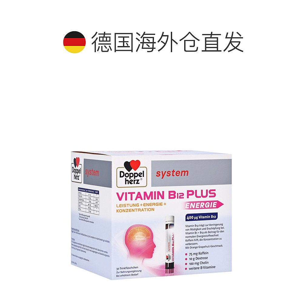 欧洲直邮Doppelherz双心胆碱维B12葡萄糖能量口服液30支每天一瓶