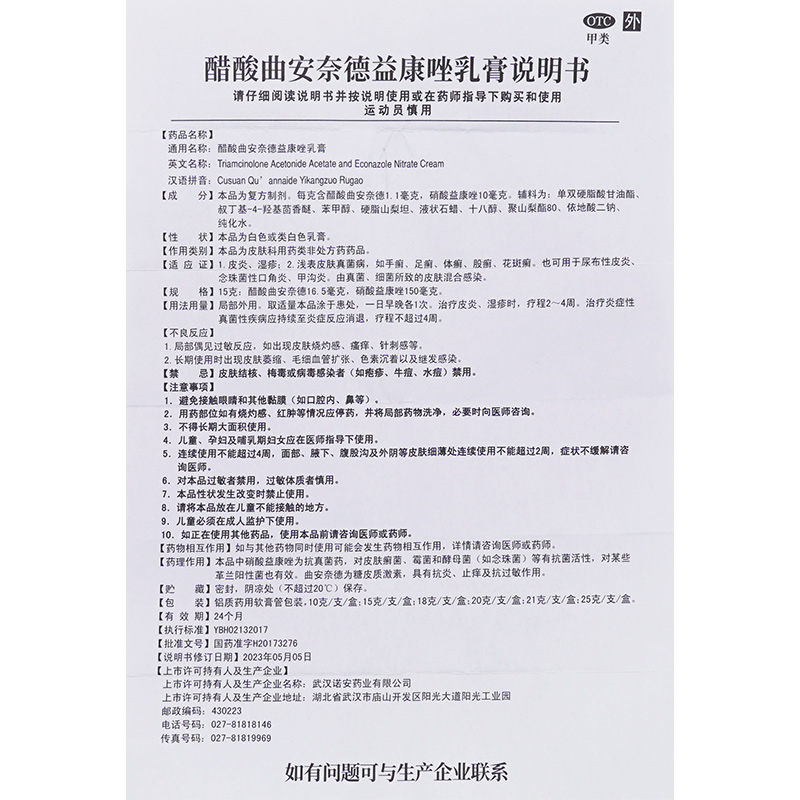嘉效醋酸曲安奈德益康唑乳膏曲安奈德益康乳膏皮炎湿疹止痒脚气药