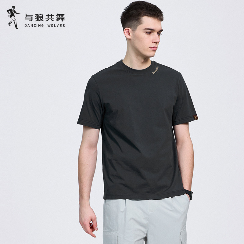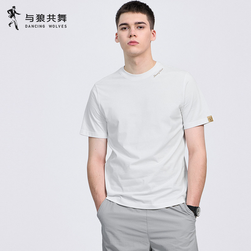 【7A抗菌】与狼共舞圆领短袖T恤男2025夏季新款防螨内搭打底上衣