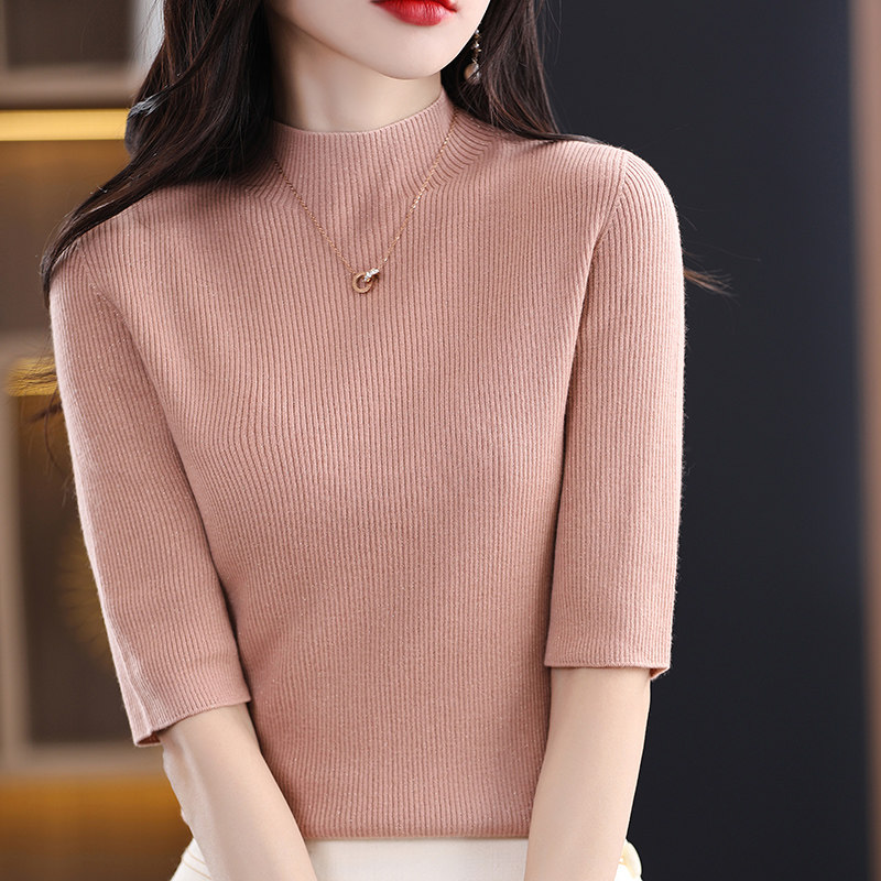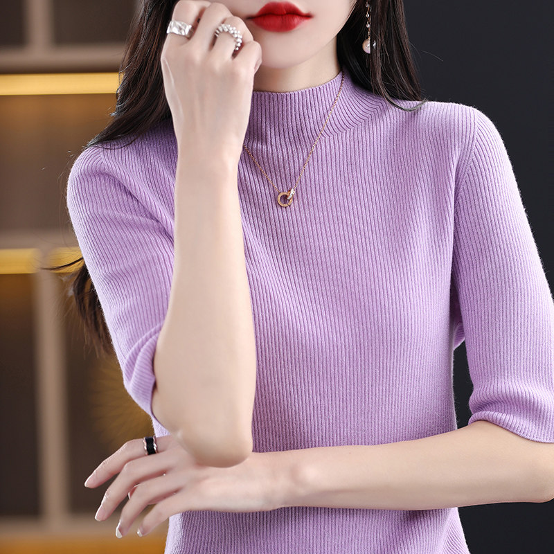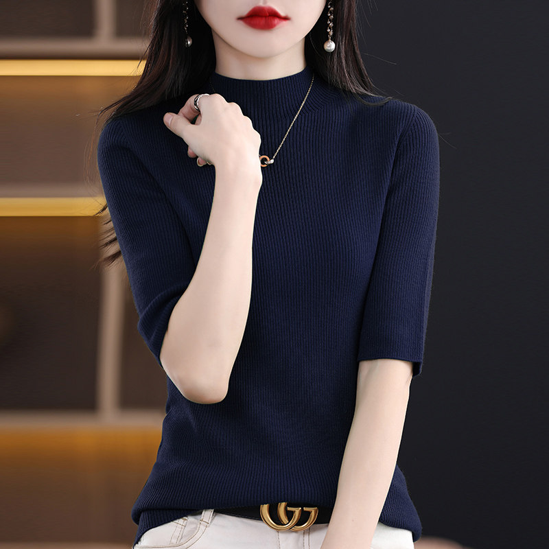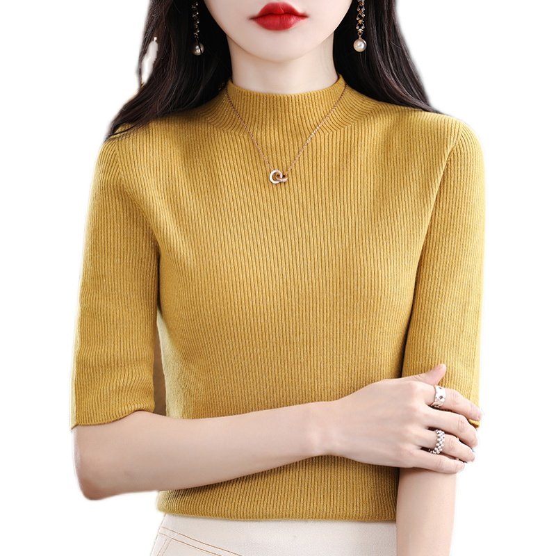 春夏半高领羊绒短袖100羊毛衫毛衣女宽松韩版半袖针织打底衫薄款