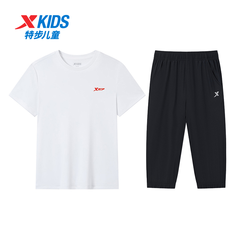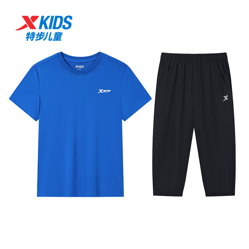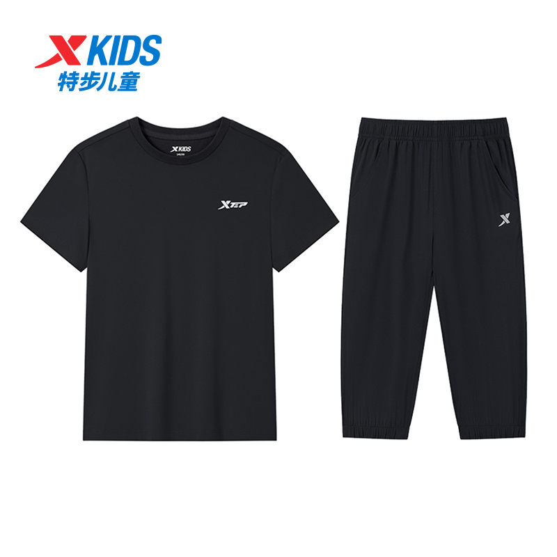特步男童短袖七分裤套装2025秋季新款大童青少年运动服儿童夏装男