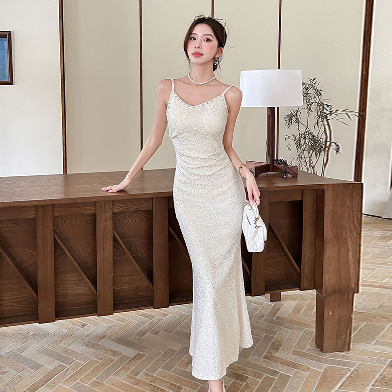 春装150cm显高女装矮个子XXXS加小码高级钉珠亮片鱼尾吊带裙时尚