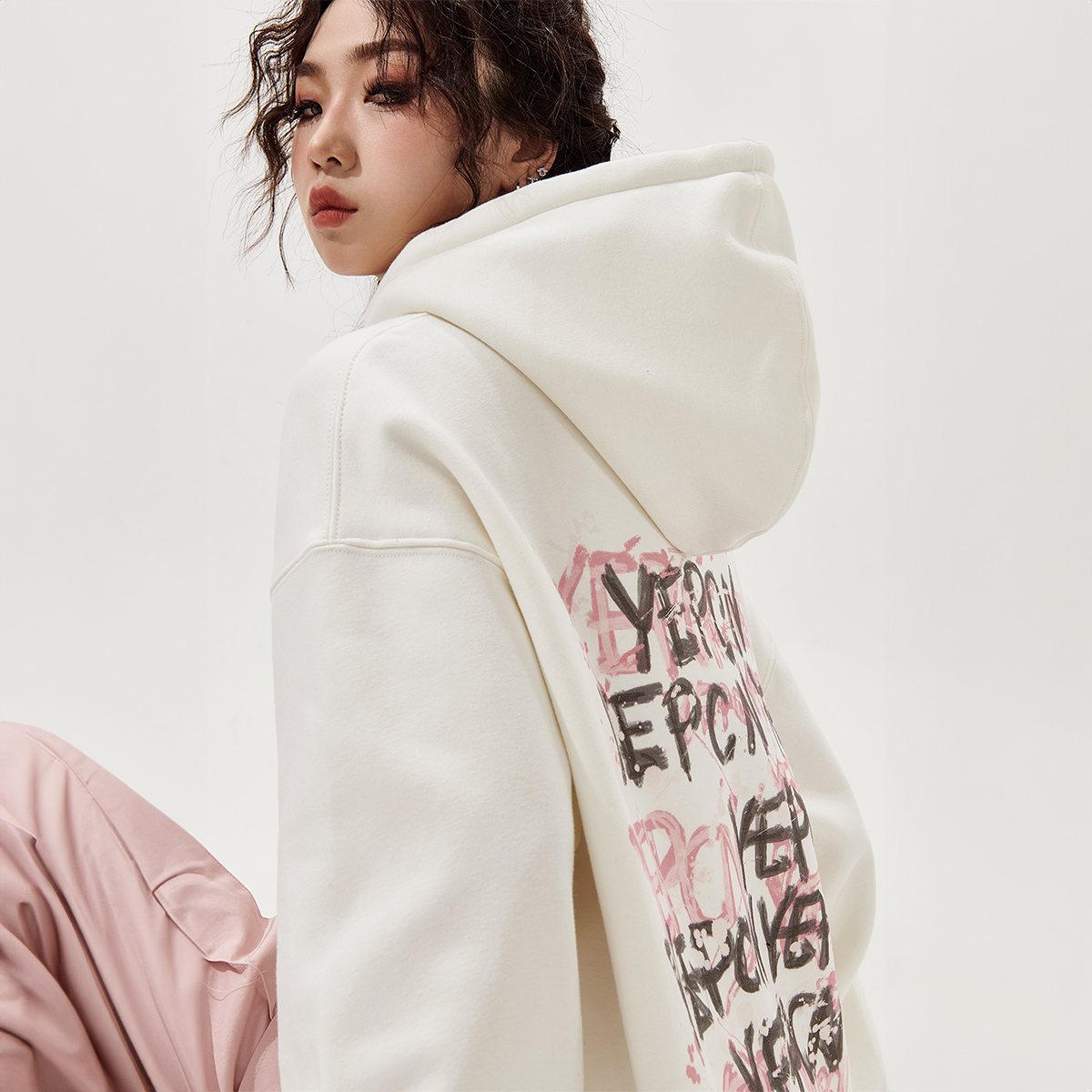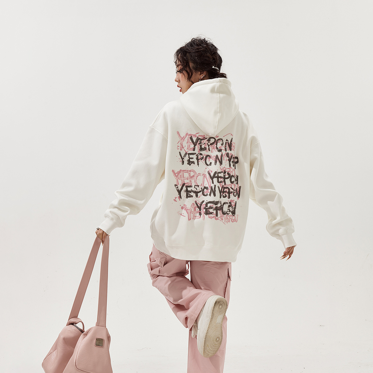YEP白色印花连帽卫衣女春秋款美式2025新款oversize宽松外套上衣