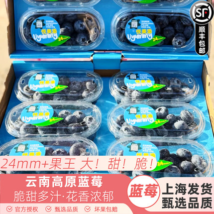 云南24mm+原箱大蓝莓王甜脆悦美添花香蓝莓新鲜8盒装顺丰包邮