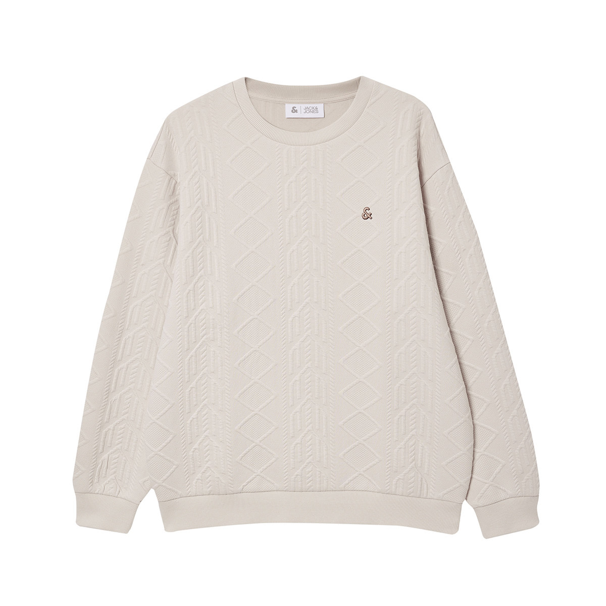 绫致杰克琼斯男秋冬卫衣纯色肌理感提花针织刺绣百搭长袖上衣