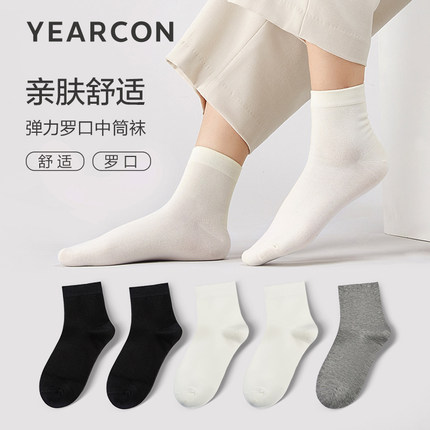 意尔康袜子女秋冬季吸汗运动棉袜女士白色时尚百搭中筒袜ins潮