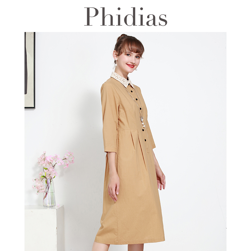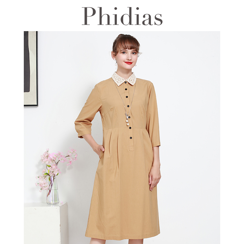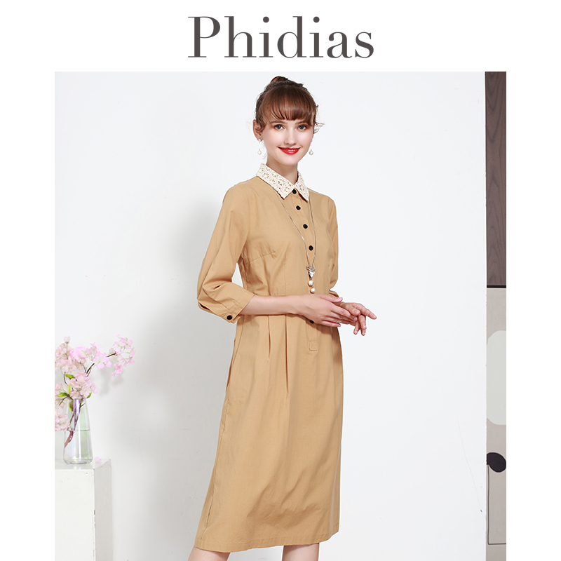 Phidias法式高级感连衣裙女夏季2025年新款收腰显瘦时尚纯色裙子