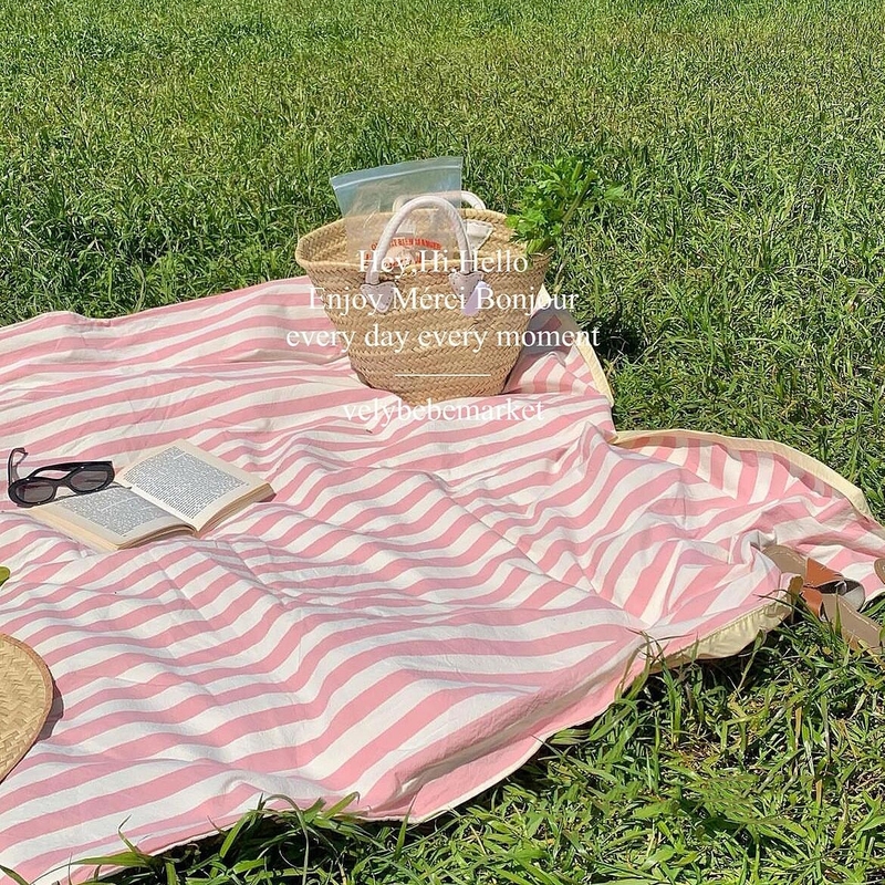 【春游好物】粉色条纹野餐垫防潮垫加厚野餐布ins风户外烧烤桌布
