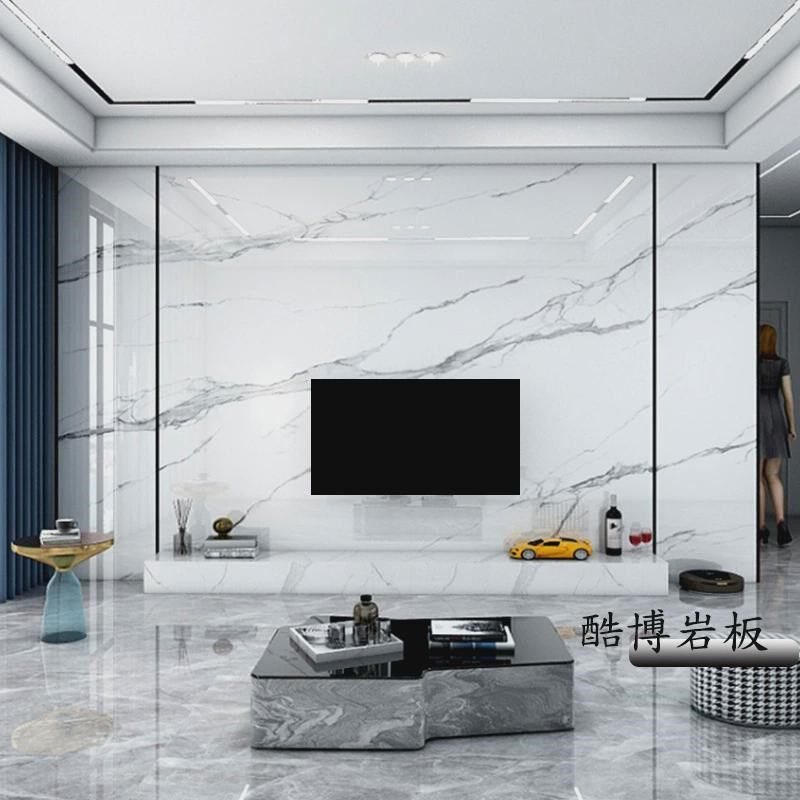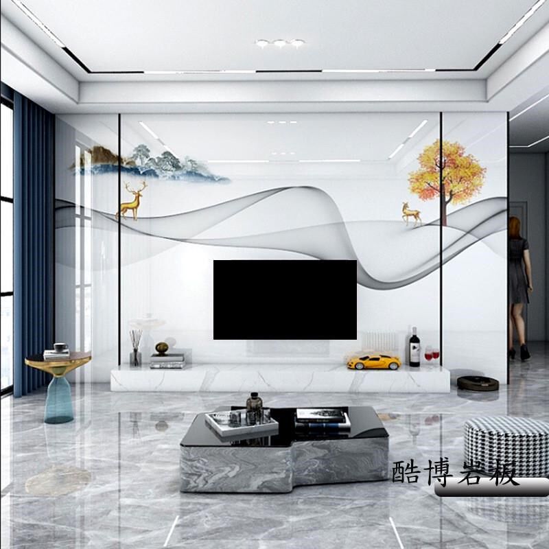 瓷砖电视背景墙效果图高温微晶石岩板现代简约客厅石材沙发大板墙